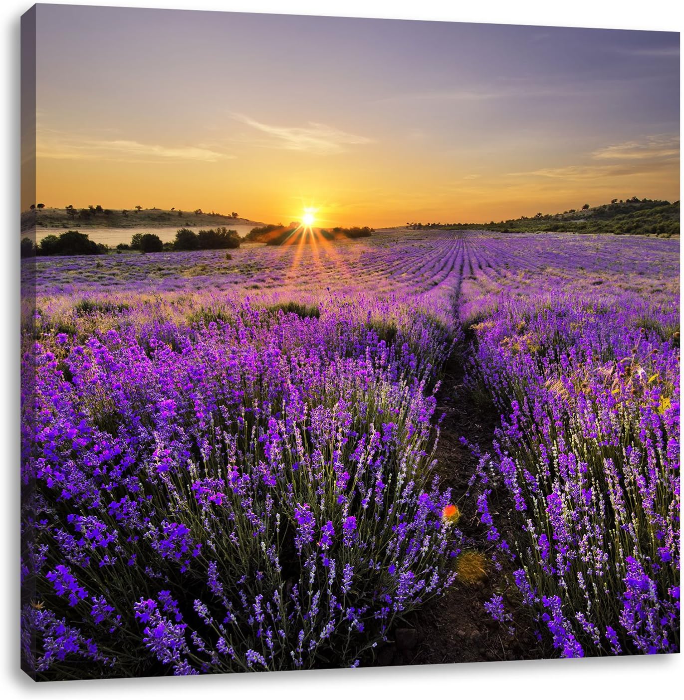Lavendelfeld in Frankreich, Format: 70x70 auf Leinwand, XXL riesige Bilder fertig gerahmt mit Keilra