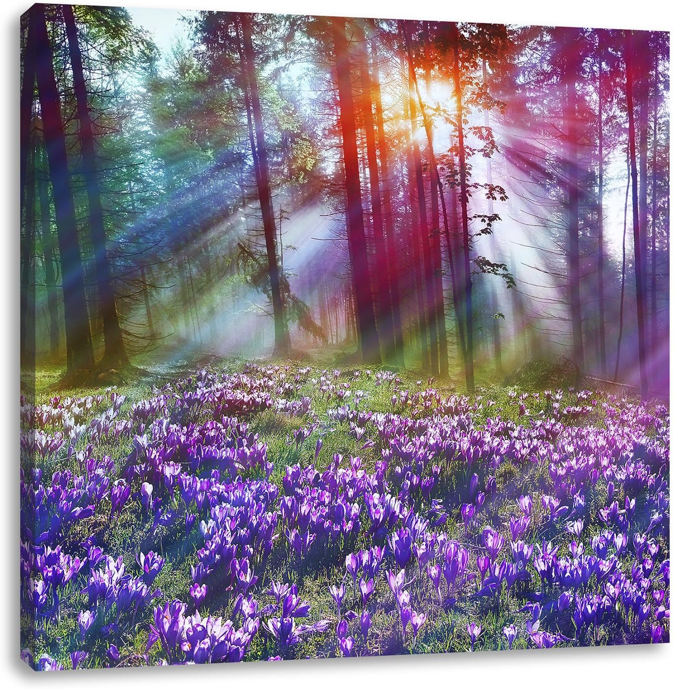 Lavendel im Wald, Format: 70x70 auf Leinwand, XXL riesige Bilder fertig gerahmt mit Keilrahmen, Kuns