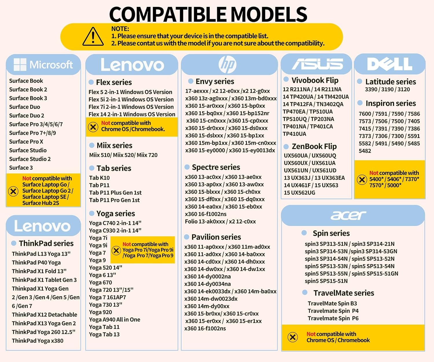 - Wichtige Informationen: Der LAZARTITE M-Stift ist nicht kompatibel mit Chromebook OS, Apple- und Samsung-Geräten. Bitte überprüfen Sie die kompatiblen Geräte, die in den "Compatible Models" aufgeführt sind, bevor Sie Bestellungen aufgeben.