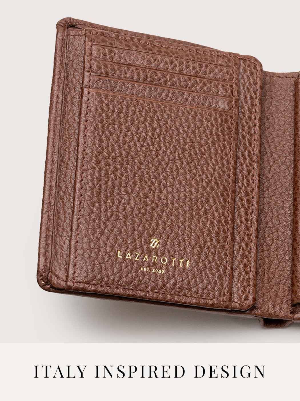 - HOCHWERTIG: Die Geldtasche wird in Handarbeit aus genarbtem, hochwertigem Rind-Leder gefertigt. Das Material ist robust und schmutzresistent. Das zeitlose Design, die Goldprägung EST 2007 auf der Innenseite sorgen für eine klassisch elegante Optik -