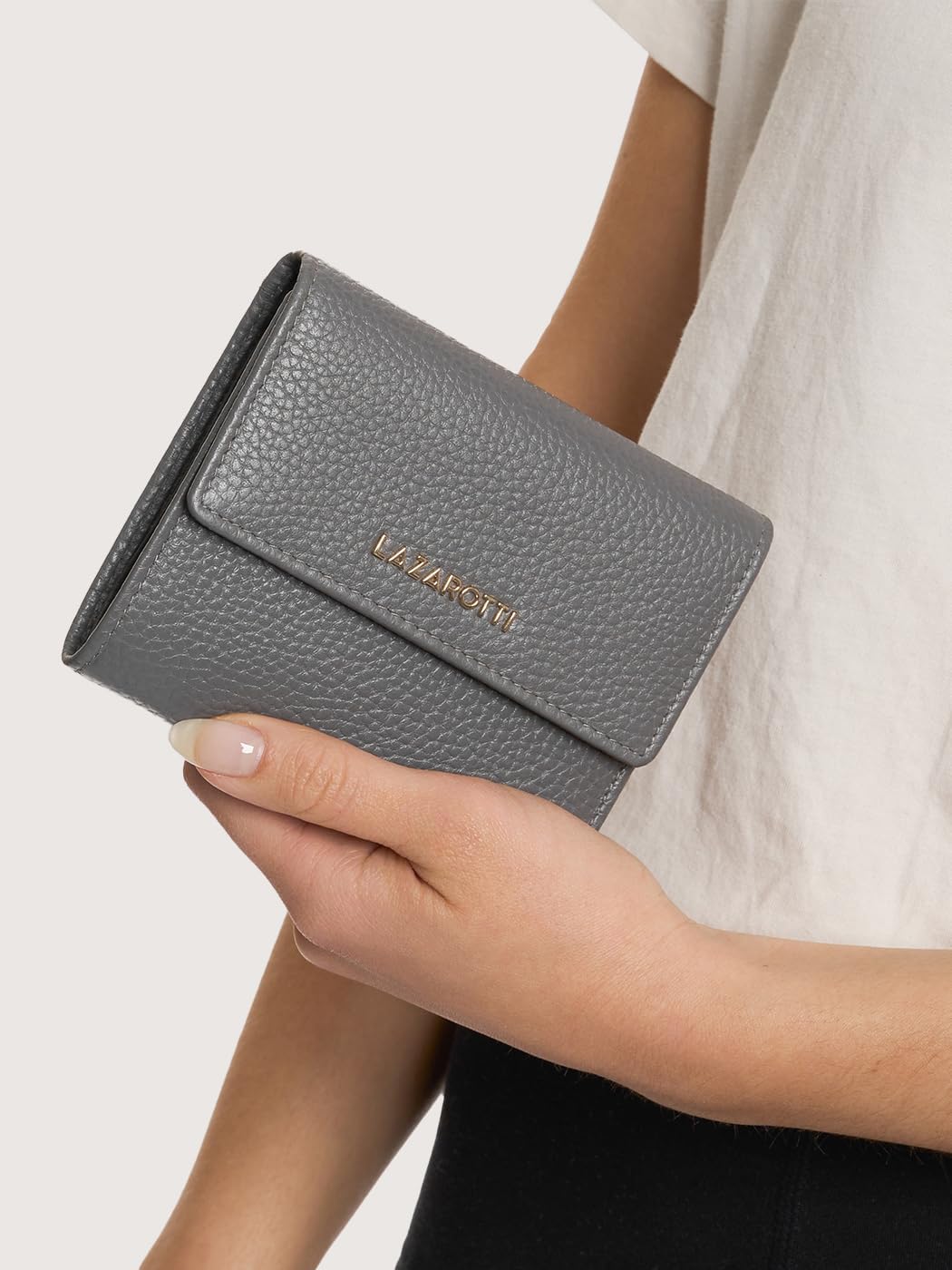 Lazarotti Bologna mittelgrosse Leder Geldbörse Damen | mit Druckknopf, 8 Kartenfächer, Münzfach, RFI