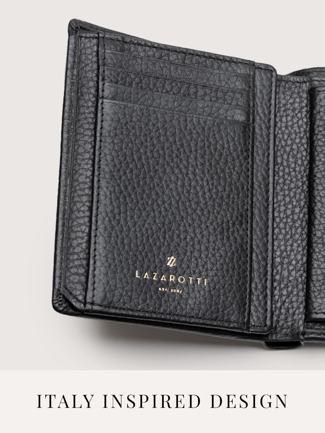 - HOCHWERTIG: Die Geldtasche wird in Handarbeit aus genarbtem, hochwertigem Rind-Leder gefertigt. Das Material ist robust und schmutzresistent. Das zeitlose Design, die Goldprägung EST 2007 auf der Innenseite sorgen für eine klassisch elegante Optik -