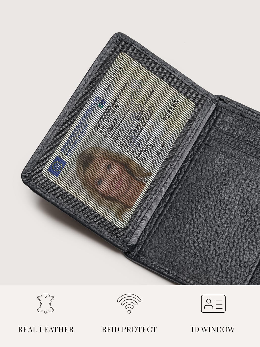 - RFID-SCHUTZ: Dank eingebautem RFID-Blocker Kreditkarten / Personalausweis, etc. vor unbefugten Scans durch Lesegeräte geschützt.