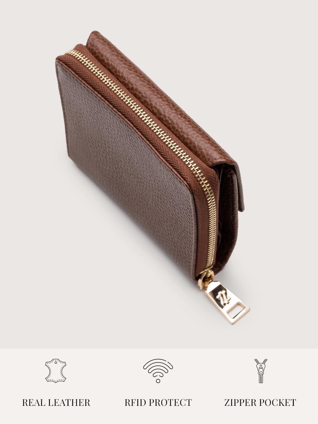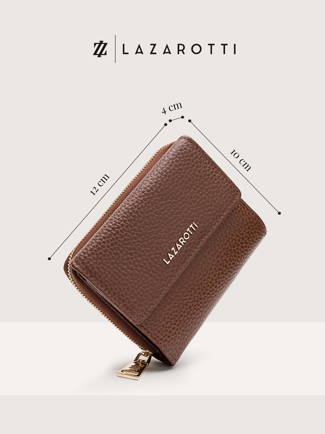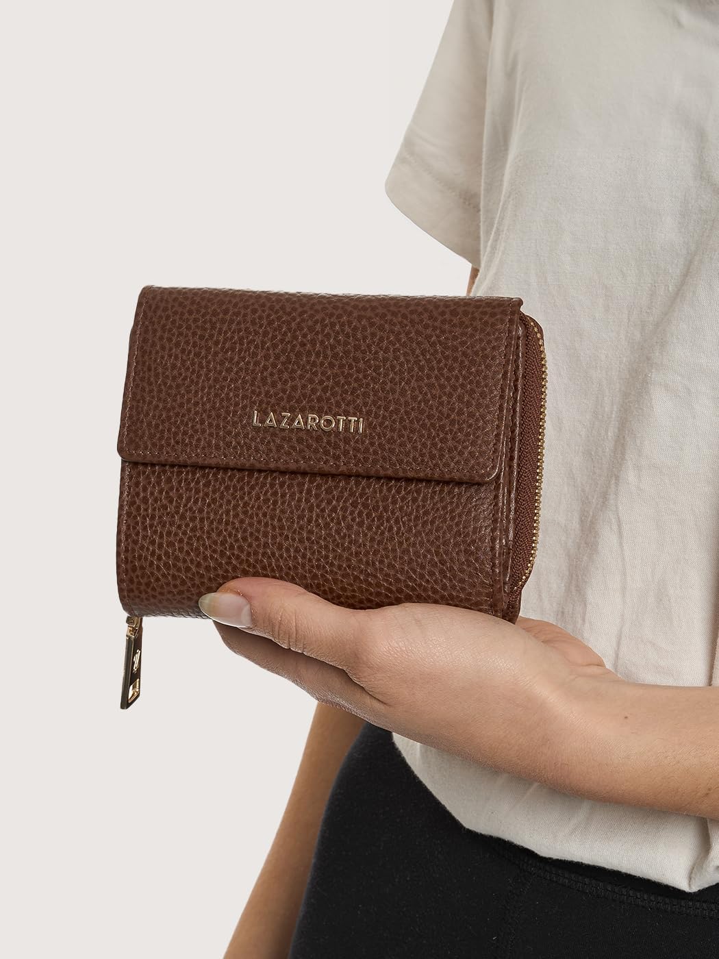- HOCHWERTIG: Die Geldtasche wird in Handarbeit aus genarbtem, hochwertigem Rind-Leder gefertigt. Das Material ist robust und schmutzresistent. Das zeitlose Design, der grosse Metaillzipper mit dem Lazarotti-Logo, die Goldprägung EST 2007 auf der