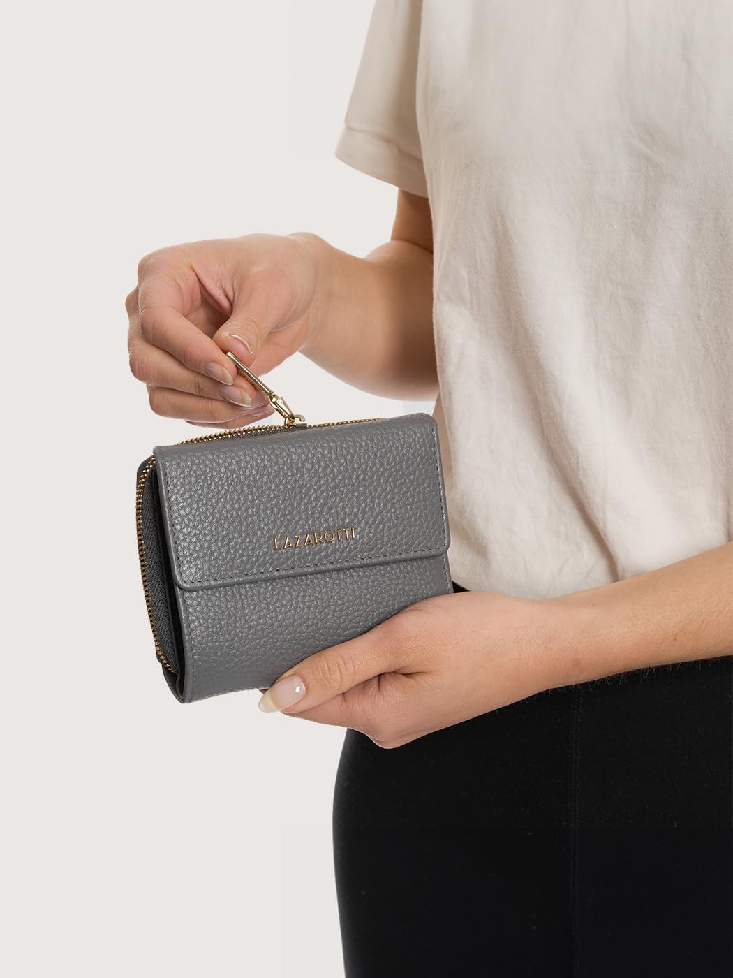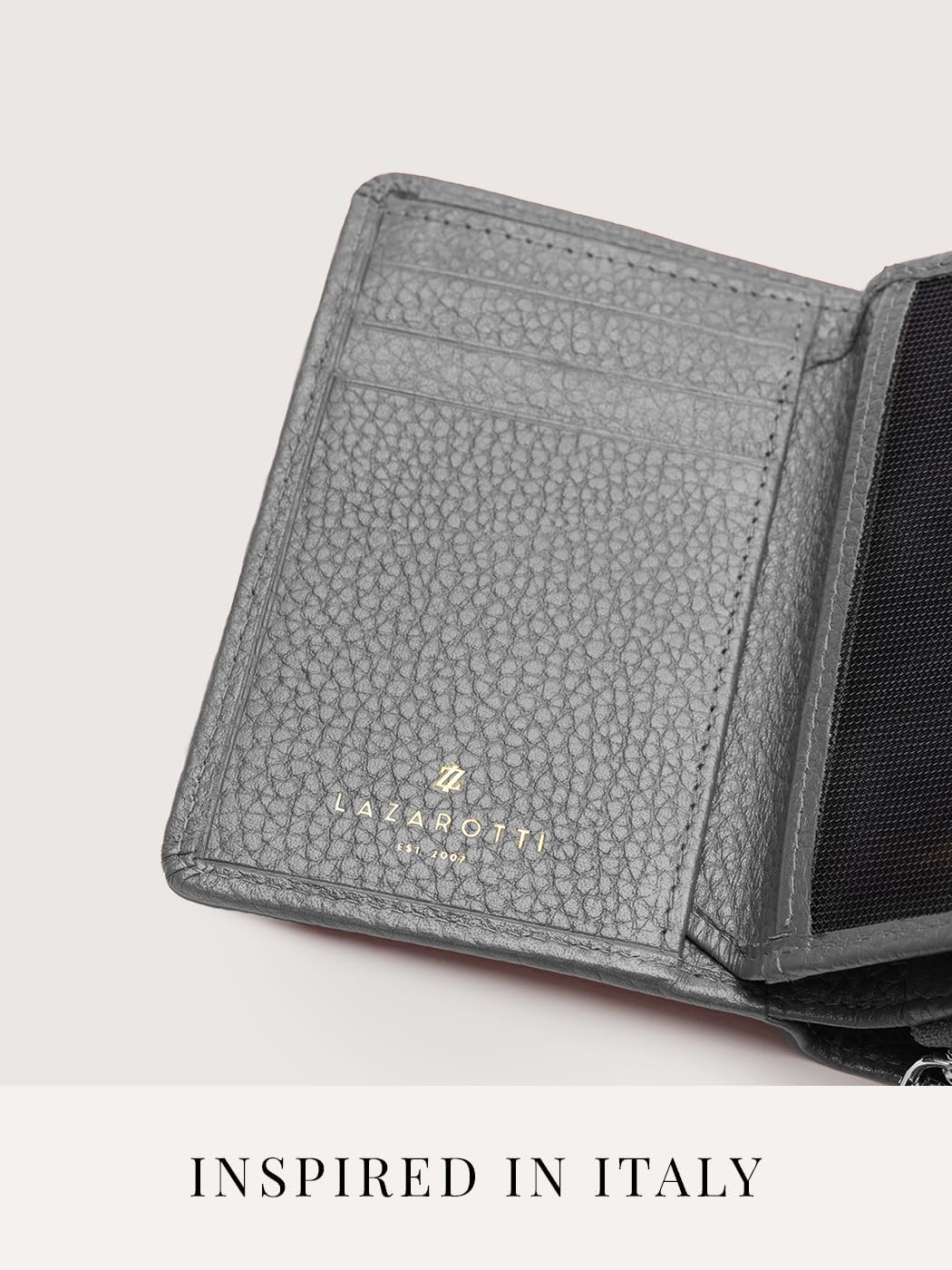 - HOCHWERTIG: Die Geldtasche wird in Handarbeit aus genarbtem, hochwertigem Rind-Leder gefertigt. Das Material ist robust und schmutzresistent. Das zeitlose Design, der grosse Metaillzipper mit dem Lazarotti-Logo, die Goldprägung EST 2007 auf der