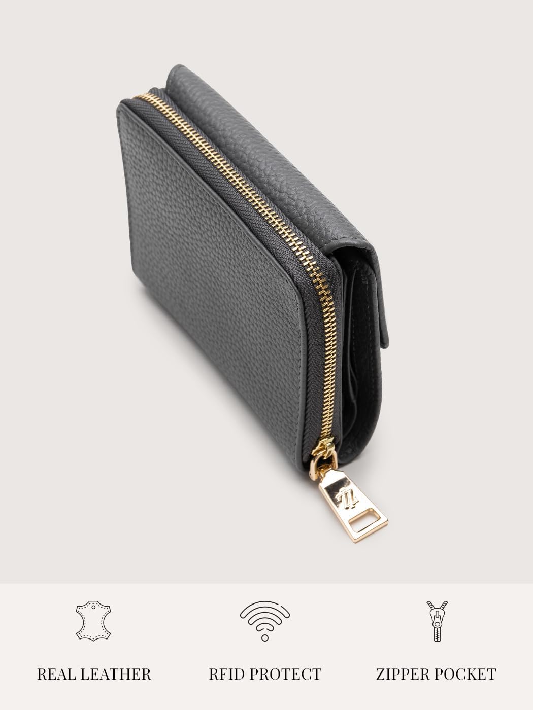 - KAPAZITÄT: Das Portemonnaie hat 9 Kreditkartenfächer, 5 Steckfächer, 2 Scheinfächer und 1 Münzfach. Das Münzfach hat eine Trennwand (somit zwei Münzfächer), zwei weitere Steckfächer & einen Reissverschluss. Der Überschlagverschluss des