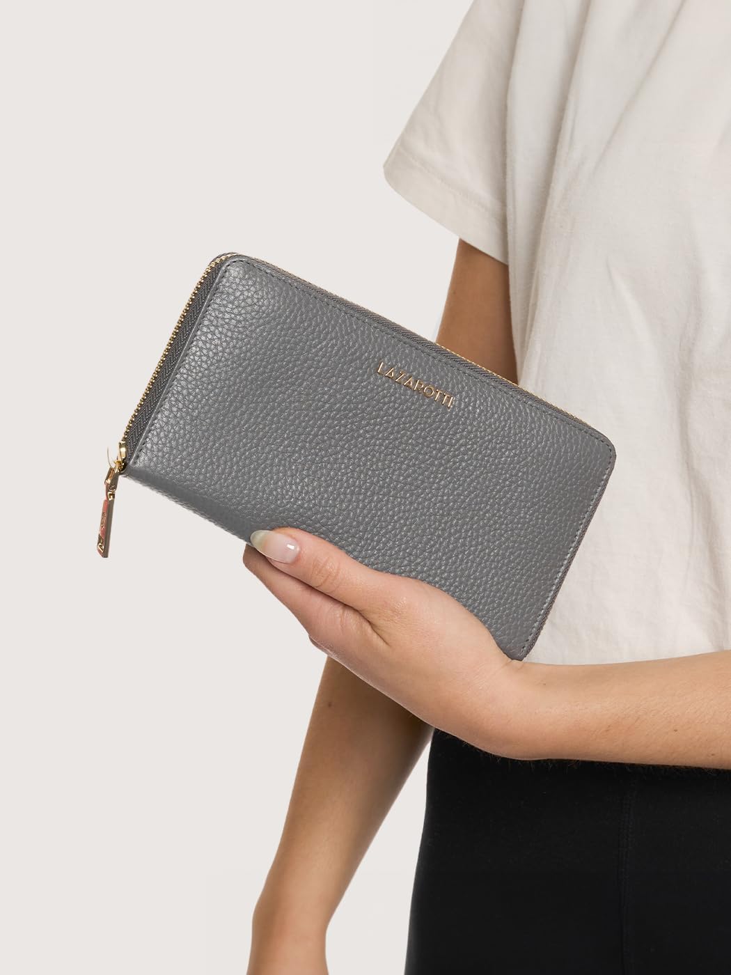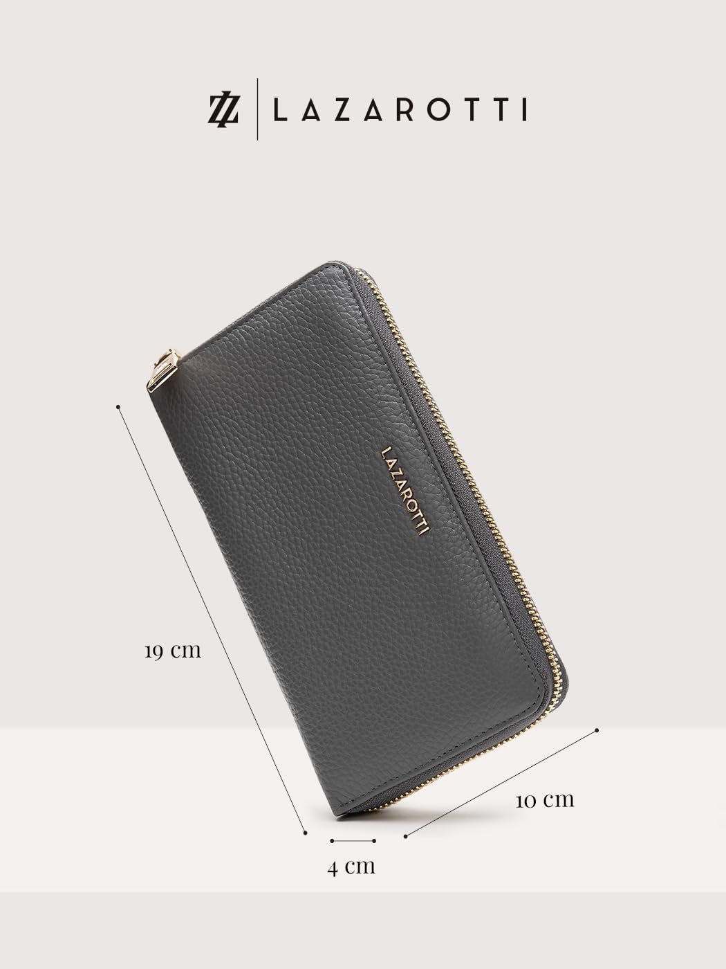 - HOCHWERTIG: Die Geldtasche wird in Handarbeit aus genarbtem, hochwertigem Rind-Leder gefertigt. Das Material ist robust und schmutzresistent. Das zeitlose Design, der grosse Metaillzipper mit dem Lazarotti-Logo, die Goldprägung EST 2007 auf der