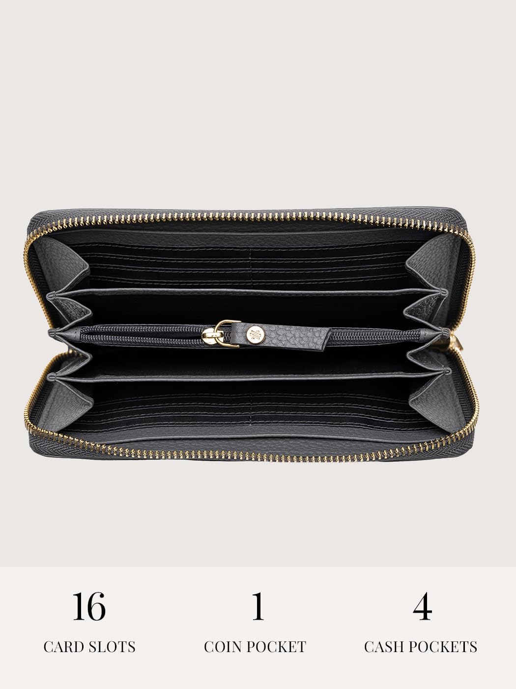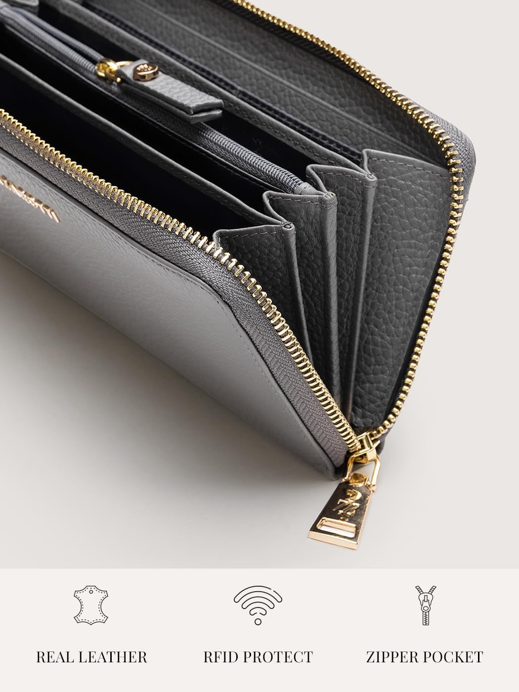 - KAPAZITÄT: Das Portemonnaie hat 16 Kreditkartenfächer, 3 Steckfächer, 1 Netzfach, 4 Scheinfächer und ein Münzfach mit Reissverschluss. Die Damengeldbörse selbst wird durch einen robusten Reissverschluss verschlossen, somit werden all Ihre
