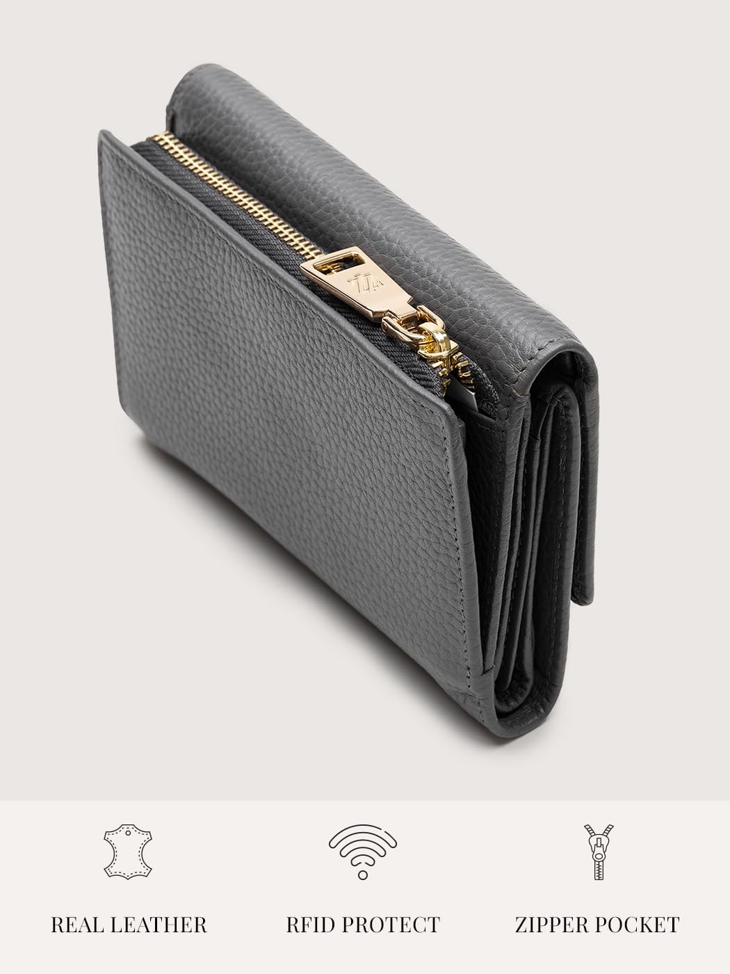 - MATERIAL: Das zeitlos elegante Portemonnaie wird in Handarbeit aus genarbtem Rind-Leder gefertigt.