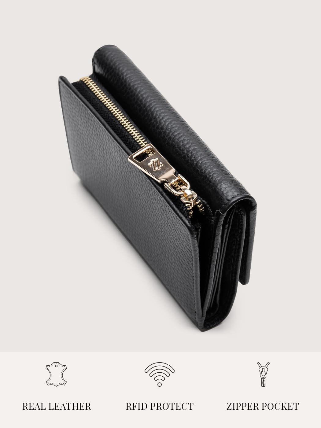 • RFID-SCHUTZ: Dank eingebautem RFID-Blocker sind Kreditkarten / Personalausweis, etc. vor unbefugten Scans durch Lesegeräte geschützt.