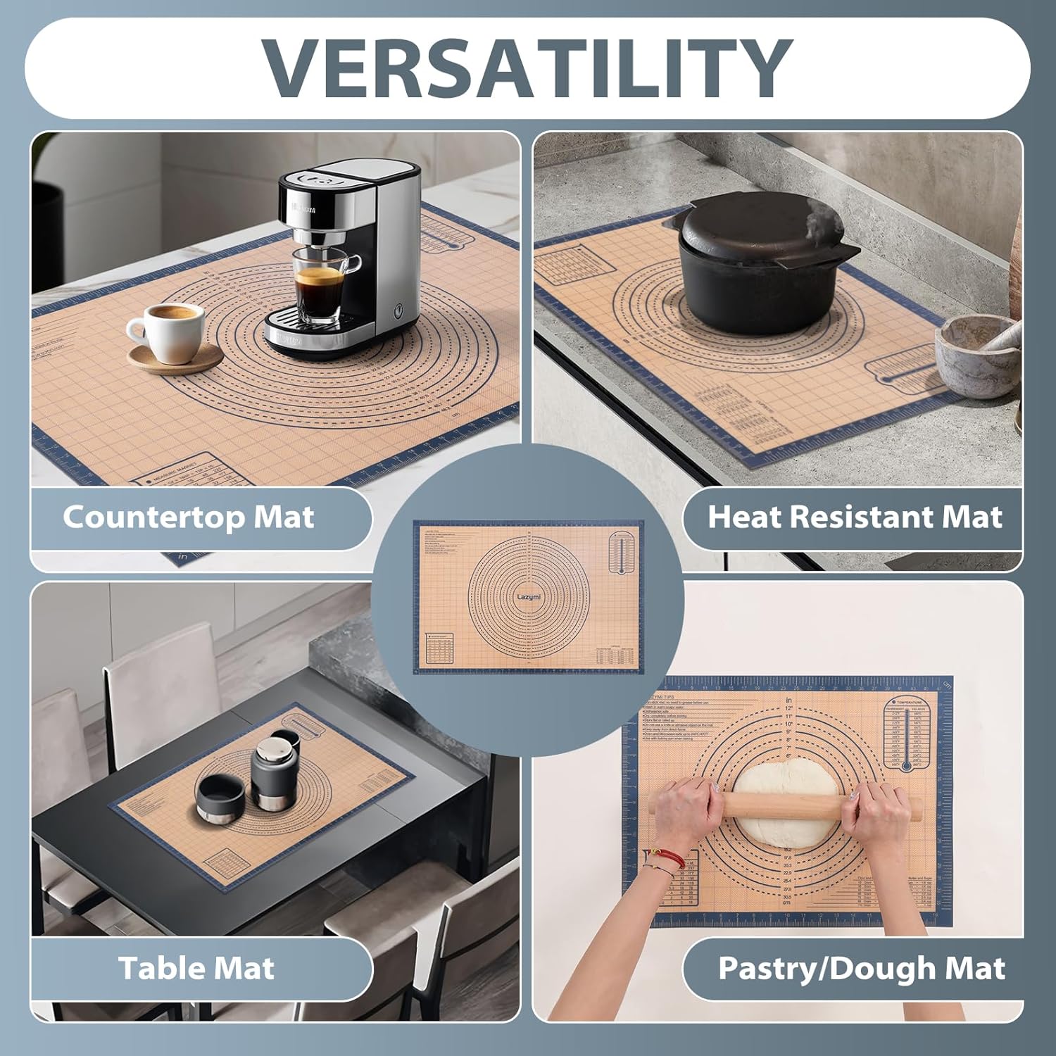 - đȘăMehrzweckă Die silikon ausrollmatte betrĂ€gt 91 * 61 cm. Es gibt Ihnen eine FlĂ€che,um den Teig auszurollen und zu verhindern, dass das Mehl auf den Boden fĂ€llt.Es ist eine Multifunktions-Silikon-Backmatte, die ĂŒber Mess- und