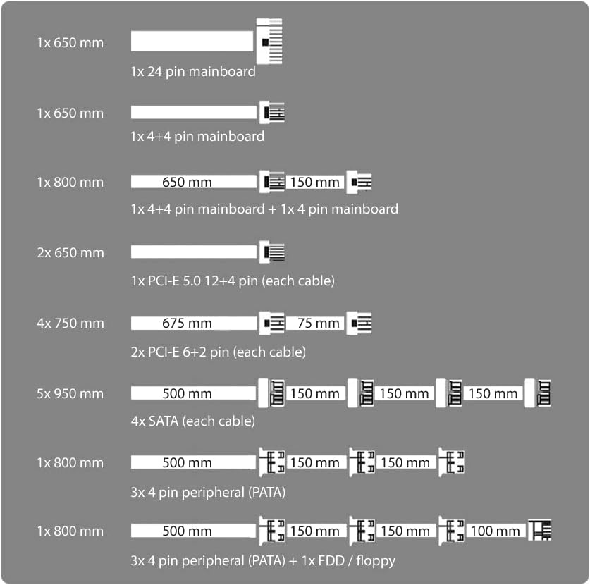 - Mehrfach-Grafikkartenunterstützung: Mit insgesamt zehn PCI-Express-Anschlüssen, darunter 2x PCIe 5.0 12+4-Pin und 8x PCIe 6+2-Pin, ist das Netzteil die perfekte Lösung für Enthusiasten und Gamer, die mehrere Grafikkarten verwenden möchten. Maximale