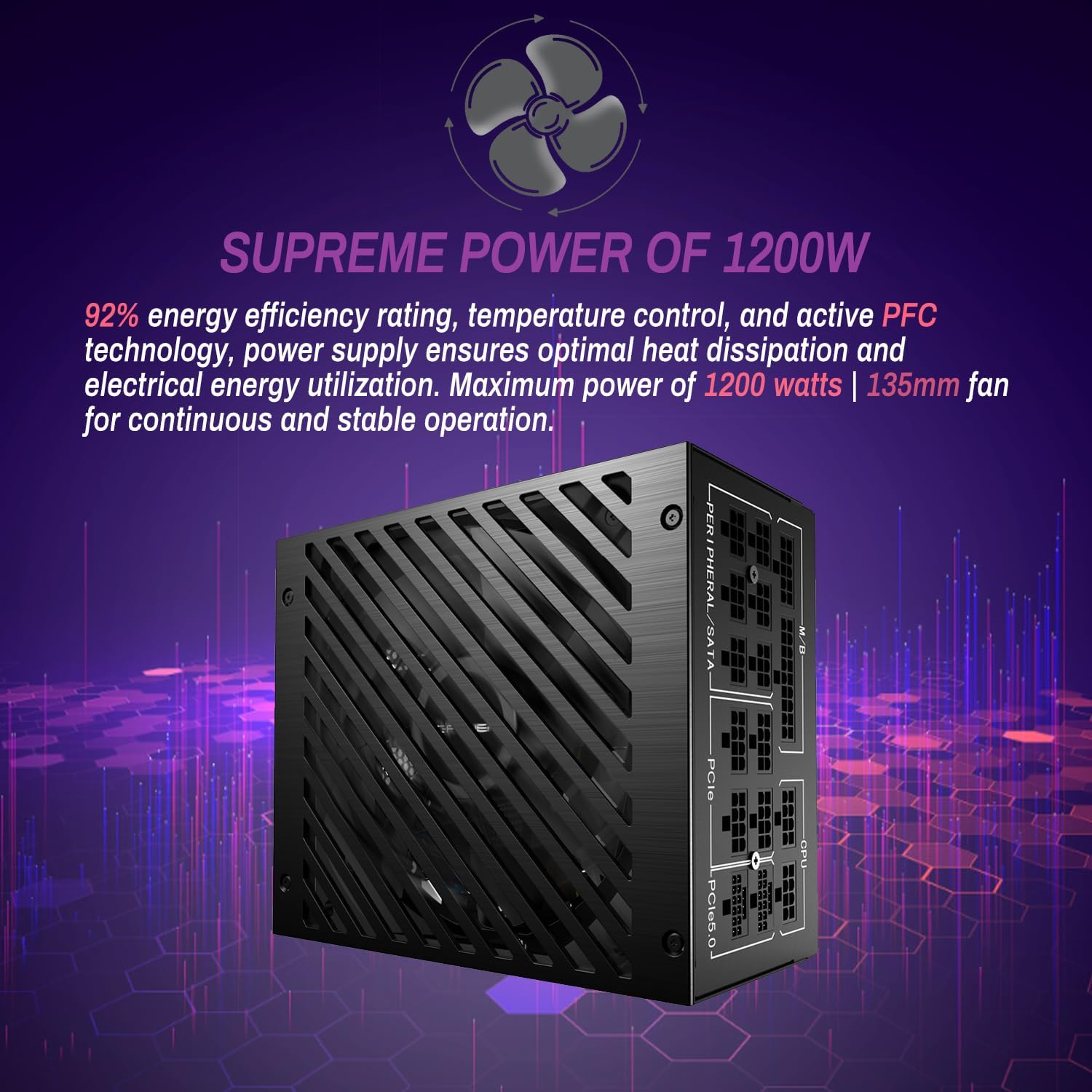 - Erstklassige Leistung: Mit 1200 Watt bietet das Netzteil erstklassige Leistung für Ihre Komponenten. Egal ob anspruchsvolle Grafikkarten oder andere leistungshungrige Komponenten, das Netzteil liefert die benötigte Power.