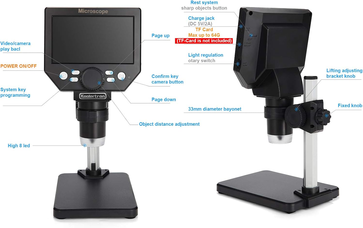 - 【Speichern und Ausgabe von Bildern und Videos】Dieses digitale Mikroskop mit LCD-Bildschirm ist mit einem Steckplatz für eine Micro-SD-Karte ausgestattet, auf der Sie die während Ihrer Beobachtungen aufgenommenen Bilder und Videos speichern und ausgeben können (Micro-SD-Karte ist nicht im Lieferumfang enthalten, maximale Unterstützung für 64G Micro-SD-Karten).