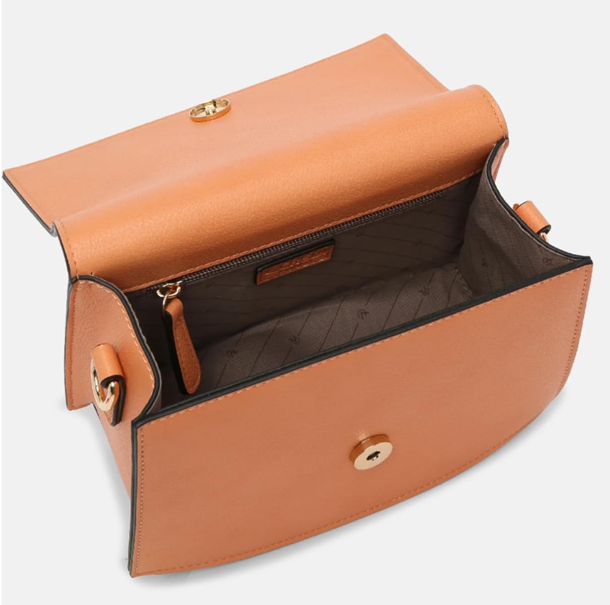 PRODUKTBESCHREIBUNGEN Mit ihrer interessanten Form und dem zeitlos-eleganten Look komplettiert die Umhängetasche LAURETTA jedes Outfit. Als stilvoller Eyecatcher fungiert das glänzende Logo-Emblem auf der Klappe. Darunter bietet das Hauptfach mit einem Steckfach und einem Reissverschlussfach Platz für Smartphone und Schlüssel. Das feste Material liegt gut in der Hand, ist aus PETA-Approved Vegan Kunstleder und überzeugt durch eine authentische Narbung. Der Schultergurt ist individuell verstellbar.