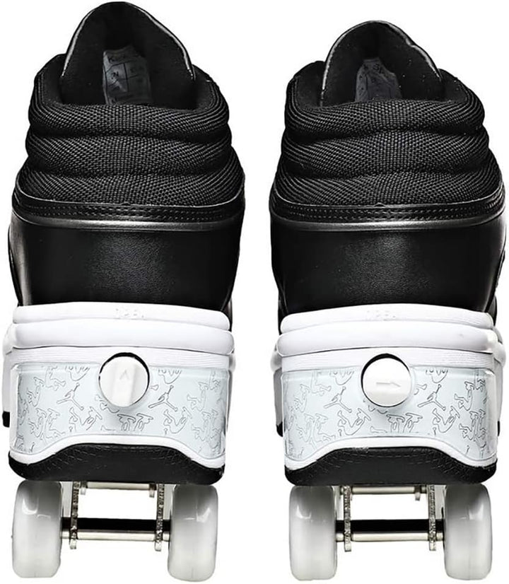 - 2-in-1-Quad-Rollschuhe: Verstellbare Mehrzweck-Skates unterscheiden sich von herkömmlichen Rollschuhen auf dem Markt. Versteckte Räder können wie normale Turnschuhe versteckt werden, sodass Sie Rollschuhe anpassen können, die nicht nur skaten,