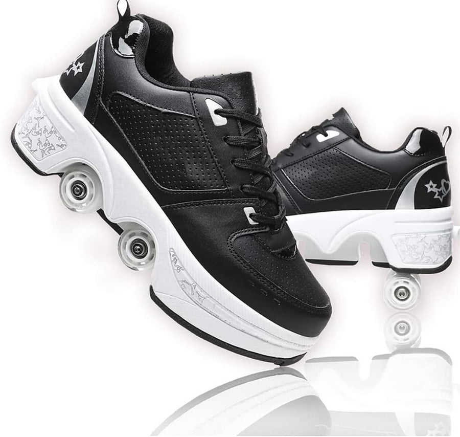 - 【Verformungswalzenschuhe 2 in 1】: Die kreative Sohle hat ein Paar versteckter Räder. Wenn Sie gleiten möchten, drehen Sie einfach den Fersenschalter und schalten Sie das Lenkrad ein, um sich leicht von Parkour-Schuhen zu wechseln, um Skates