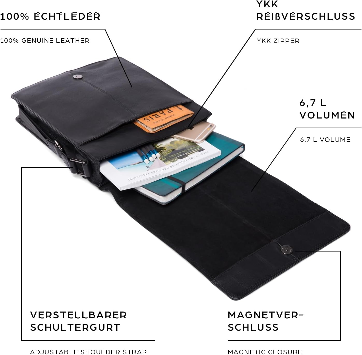 PRODUKTBESCHREIBUNGEN { language_tag:de_DE, value:"LEABAGS London Umhängetasche aus echtem Kuh-Leder im Vintage Look LEABAGS Produkte sind hochwertige Lederwaren die durch ausgezeichnete Qualität und zeitloses Design überzeugen. Auch diese Umhängetasche überzeugt durch das richtige Format, und ist für Mann und Frau ein treuer Begleiter im Beruf, Studium und Freizeit. Produktbeschreibung: Marke: LEABAGS Maße (L x B x H): ca. 26x31x8cm Material: Edles Kuhleder, das durch die geölte Oberfläche seinen einzigartigen, besonderen Vintage Look erhält Hochwertig verarbeitetes Innenfutter aus Poly-Cotton in edlem olivgrün Innenaufteilung: - 1 großes Hauptfach verschlossen durch Magnete am Lederüberschlag - 1 kleineres Nebenfach (ideal für iPad) vor dem Hauptfach verschlossen durch Magnete am Lederüberschlag - 1 kleineres mit Reißverschluss verschlossenes Innenfach - 1 mit Reißverschluss verschlossene Tasche auf der Rückseite - 2 Einsteckfächer innen im Hauptfach, ideal für Handy und Geldbörse Unser Service-Versprechen: Unsere Mission ist es Sie von unseren Produkten und unserem einzigartigen Service zu begeistern. Gerne stehen wir Ihnen bei jeglichen Fragen und Anregungen jederzeit zur Verfügung. Ihre Zufriedenheit ist unser größtes Ziel! LEABAGS Avocado Lotion Premium Lederpflege: Wir haben die auf Avocado-Öl basierende Lotion speziell für LEABAGS Produkte entwickelt und auf die Bedürfnisse und Besonderheiten des Leders angepasst. Zur einfachen Navigation suchen Sie nach \x84LEABAGS Lederpflege\x93, so können Sie direkt alles Wichtige über richtige Lederpflege erfahren." }