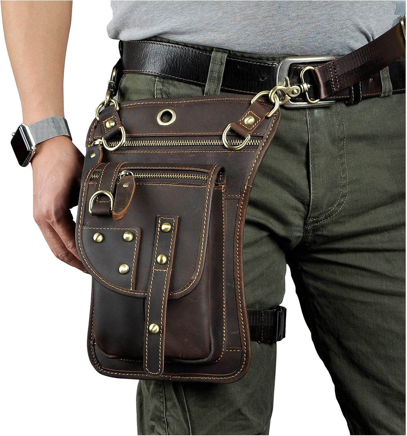 - Es ist eine hochwertige Umhängetasche aus Leder mit verstellbaren und abnehmbaren Schultergurten. Bei Verwendung mit einem Gürtel kann es auch als Hüfttasche verwendet werden.