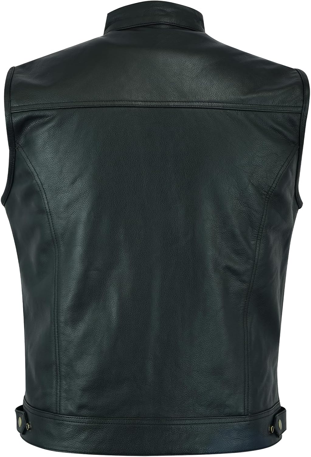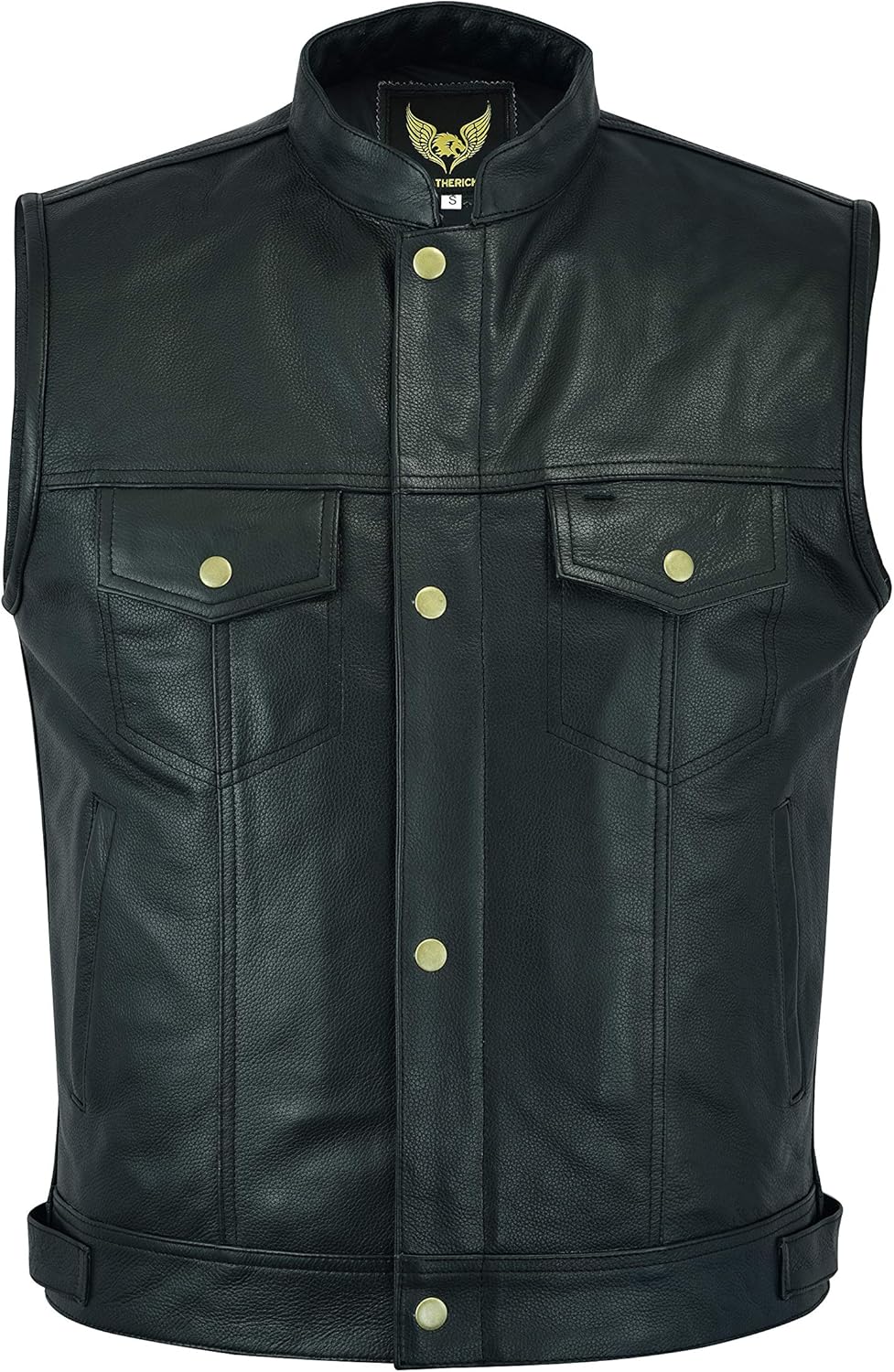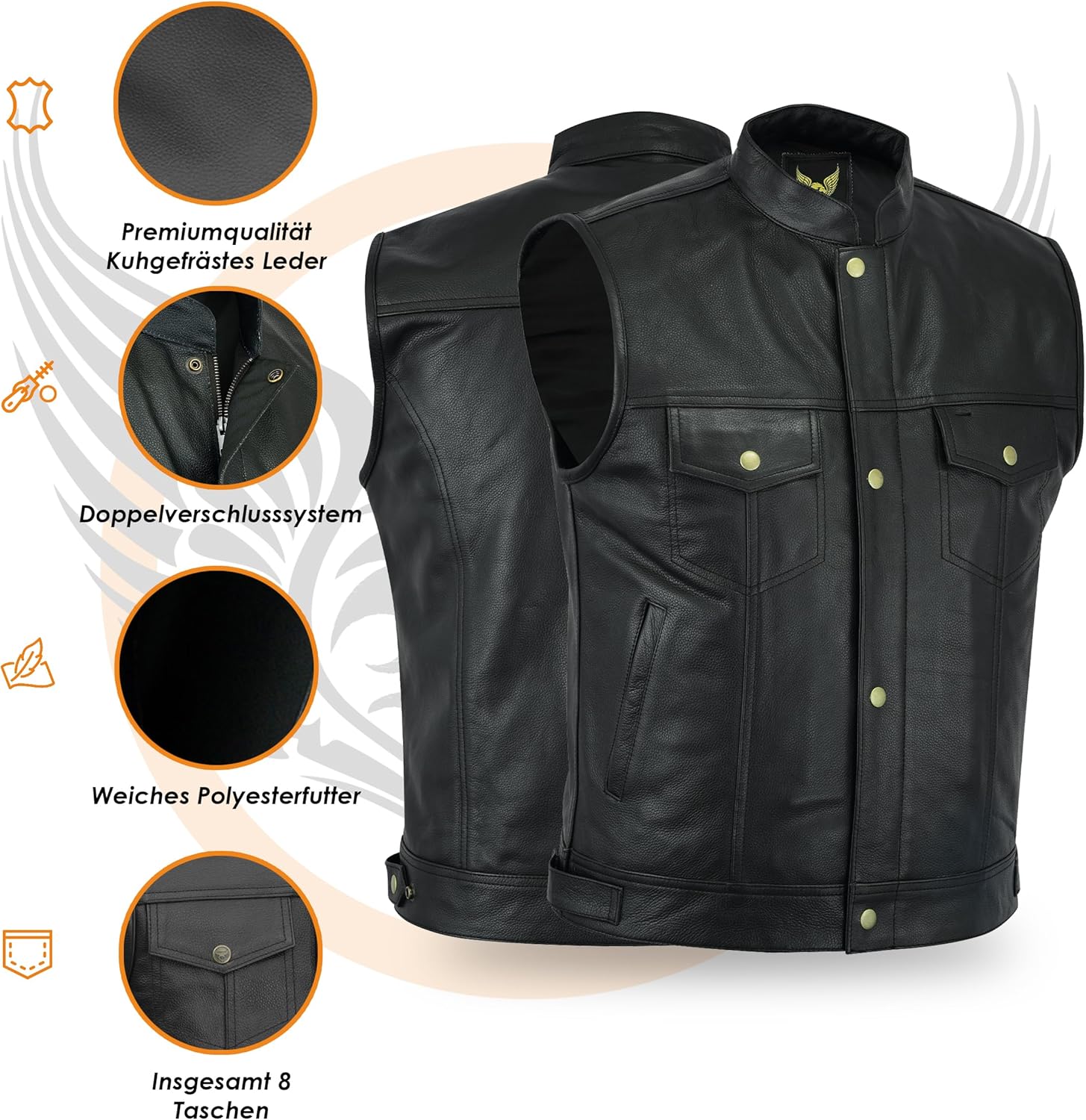 Leatherick Herren Biker Weste aus echtem Leder mit offenen Knöpfen für Reiten und modische Weste (M