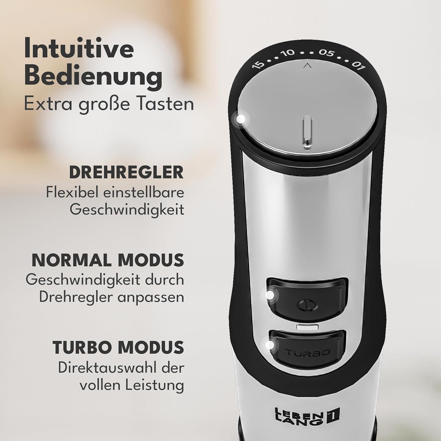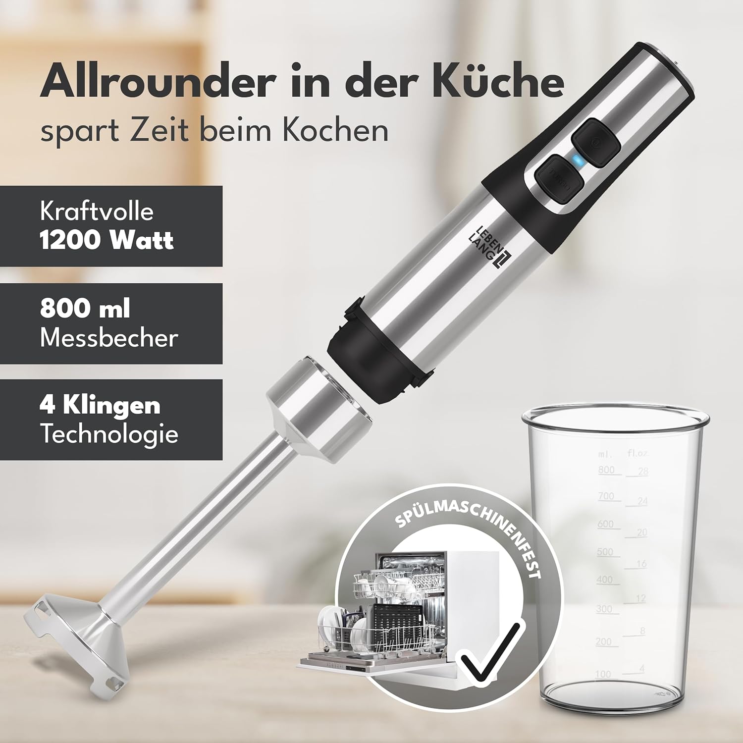 - ✅ HOCHWERTIG & KRAFTVOLL : Der elektrische Stabmixer 1200 Watt von LEBENLANG sorgt mit verbesserter Two-Blade Technology, besonders scharfen Edelstahl-Messern + abnehmbarem Edelstahl Pürrier Stab & kraftvollem Antrieb für feinste Pürierergebnisse