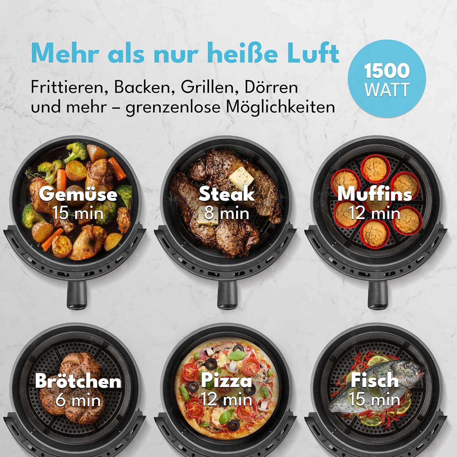 - ✅ KRAFTVOLL & SICHER : Friteuse à air & Fritöse Heisluft mit 1500W Power für schnelles, gleichmässiges Garen - Aurfrier mit Überhitzungsschutz und rutschfestem Stand für maximale Sicherheit – geniesse sorgenfreies Kochen mit voller Leistung