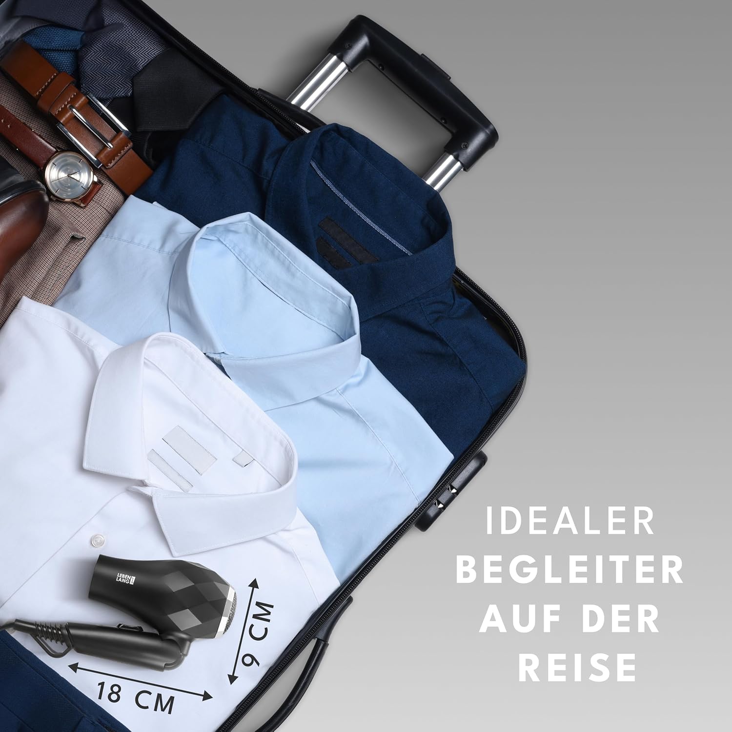 - ✅ KOMPAKT FALTBAR LEISE : Reisehaatrockner mit einklappbarem Griff & Compact-Design lässt sich ohne viel Mühe in jedem Koffer verstauen - Besonders leichte Befestigung dank Halte-Öse am Griff des Föhn ideal auch fürs Föhnen dem Duschen im