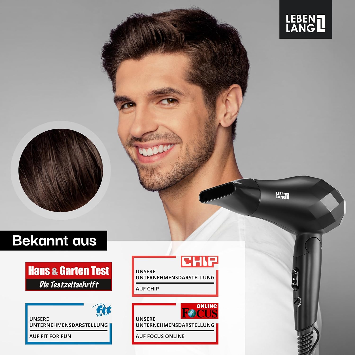- ✅ INKL. REISEZUBEHÖR : LEBENLANG Haartrockner wird mit Reisetasche für die komfortable Aufbewahrung & Styling Düse für präzises Styling geliefert - Zuverlässiger Reisebegleiter egal ob als Lockenföhn Föhn Damen oder Föhn Männer