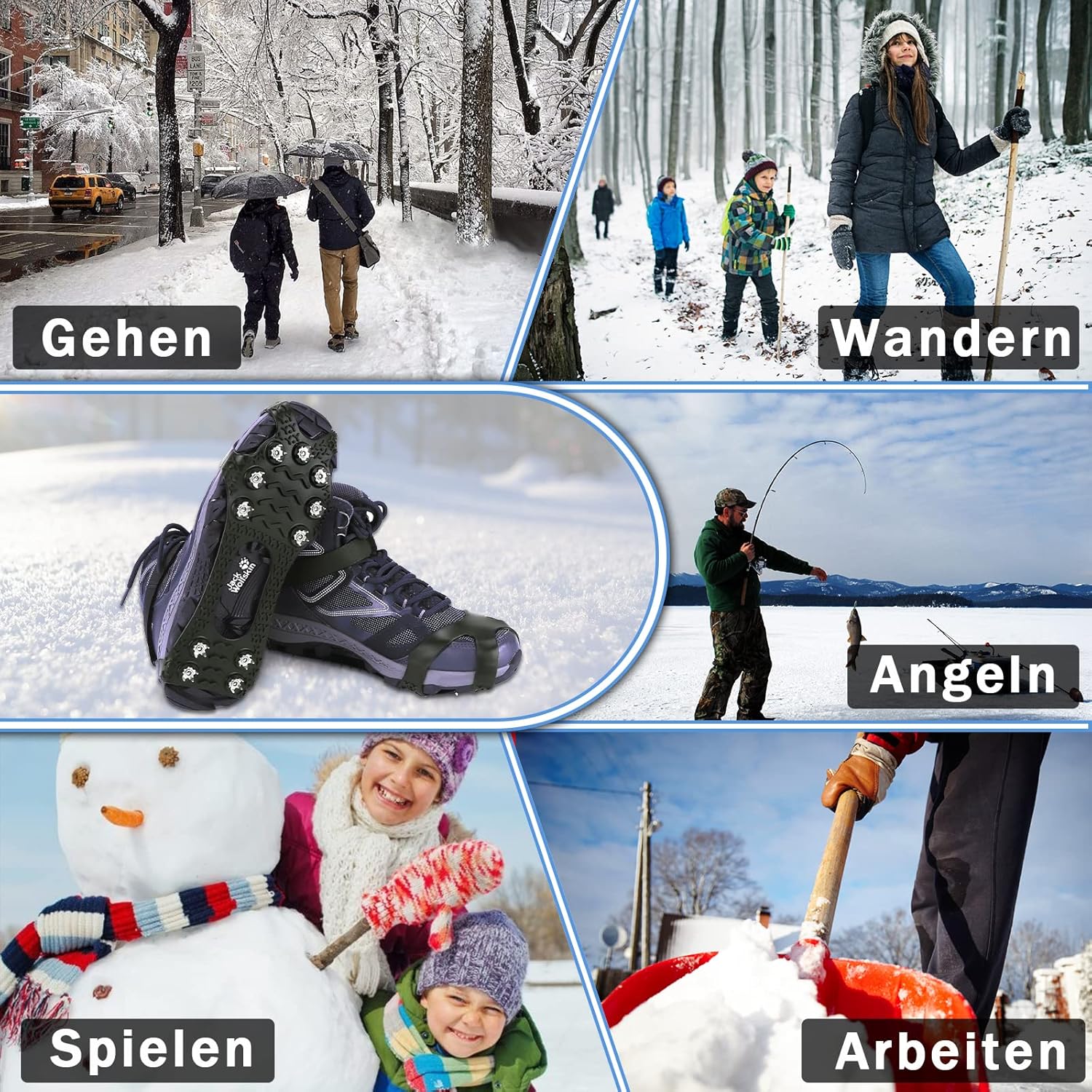 - ❄️Edelstahlspikes❄️ 11 Edelstahlspikes, die gleichmässig am Sohlenrand verteilt sind, ermöglichen dem Träger ein gutes Gleichgewicht im Schnee. Die Schuhspikes verzichten auf die traditionelle Single-Spike-Struktur. Jeder Spike hat 5 Zähne