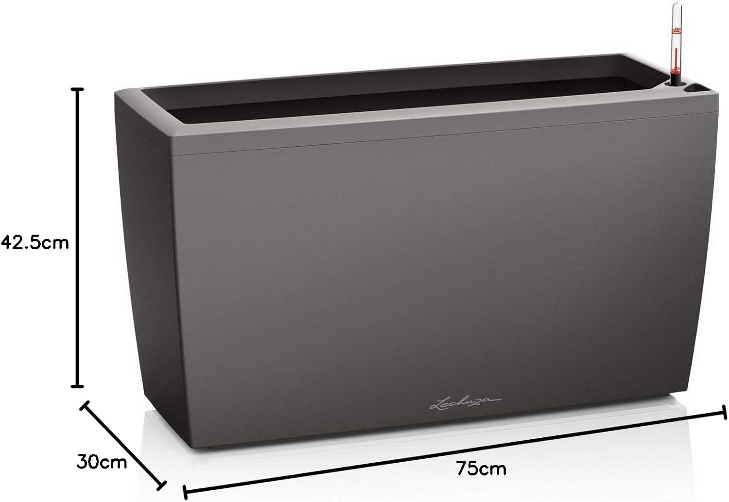 • ALL-IN-ONE: 1x Pflanzgefäss CARARO Premium, inkl. Bewässerungssystem, Pflanzsubstrat LECHUZA-PON als Drainageschicht und wechselbarem Pflanzeinsatz mit Wasserstandsanzeiger und versenkbarem Griffrahmen in Gefässfarbe. Material: Kunststoff Masse: 75 x