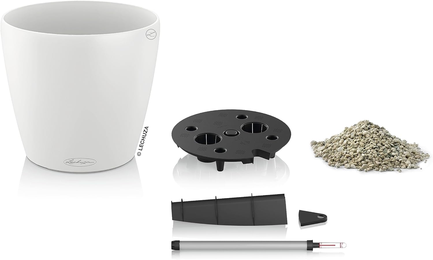 - ALL-IN-ONE: 1x Pflanzgefäss CLASSICO Color, inkl. Bewässerungssystem und Wasserstandsanzeiger, Pflanzsubstrat LECHUZA-PON als Drainageschicht. Material: Kunststoff Masse: 43,5x43,5x39,5 cm Pflanzvolumen: 33,0 l Wasserspeicher: 6,0 l