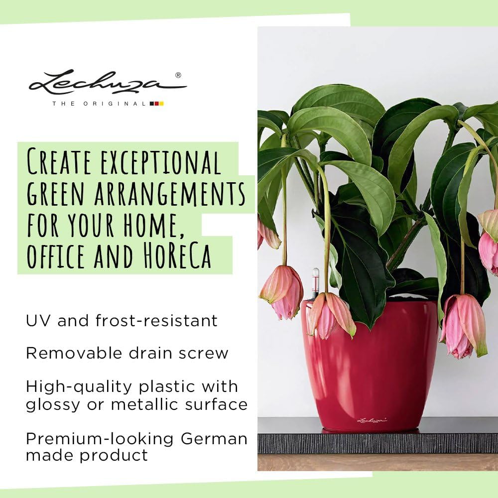 • ALL-IN-ONE: 1x Pflanzgefäss LECHUZA CLASSICO Premium LS, inkl. Bewässerungssystem, Pflanzsubstrat LECHUZA-PON als Drainageschicht und wechselbarem Pflanzeinsatz mit Wasserstandsanzeiger und versenkbarem Griffrahmen in Gefässfarbe. Material: Kunststoff