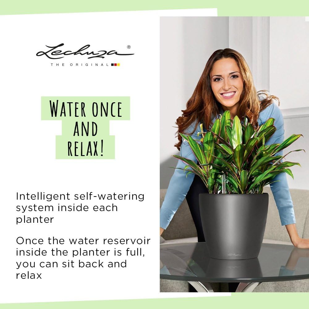 • ALL-IN-ONE: 1x Pflanzgefäss LECHUZA CLASSICO Premium LS, inkl. Bewässerungssystem, Pflanzsubstrat LECHUZA-PON als Drainageschicht und wechselbarem Pflanzeinsatz mit Wasserstandsanzeiger und versenkbarem Griffrahmen in Gefässfarbe. Material: Kunststoff