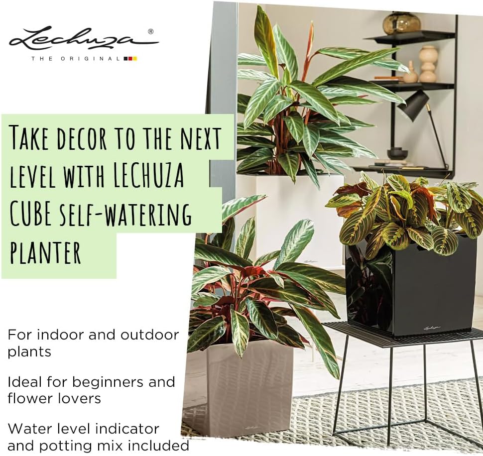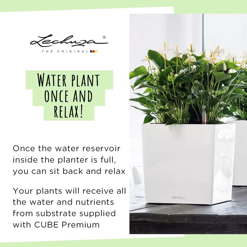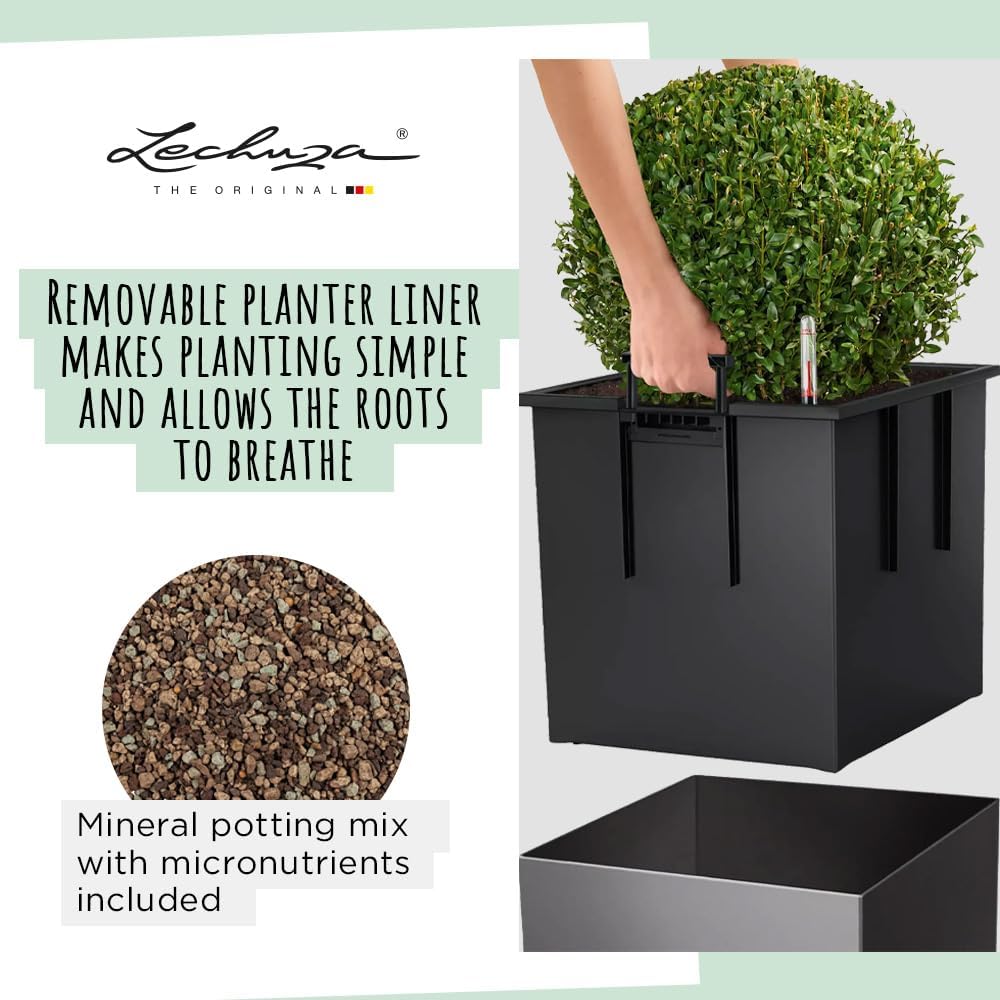 • ALL-IN-ONE: 1x Pflanzgefäss CUBE Premium, inkl. Bewässerungssystem, Pflanzsubstrat LECHUZA-PON als Drainageschicht und wechselbarem Pflanzeinsatz mit versenkbaren Griffen und Wasserstandsanzeiger. Material: Kunststoff Masse: 49 x 49 x 49,5 cm