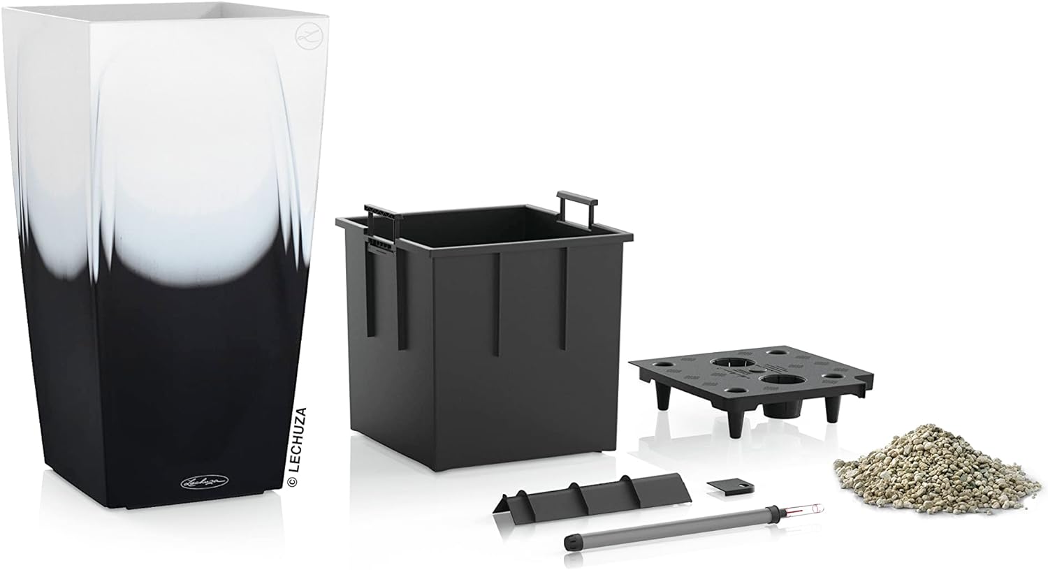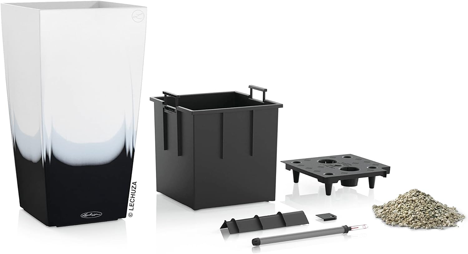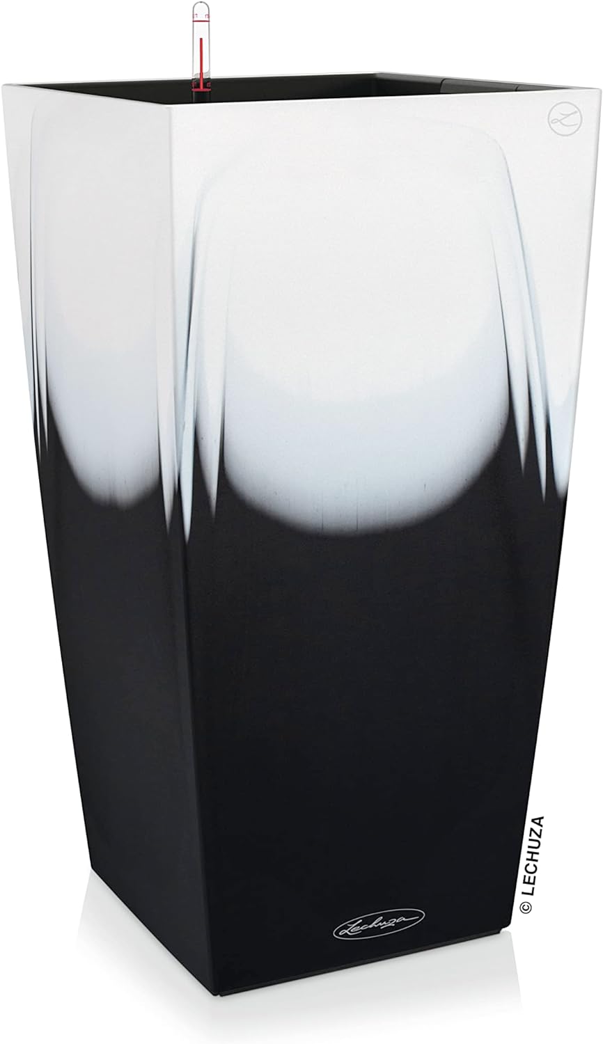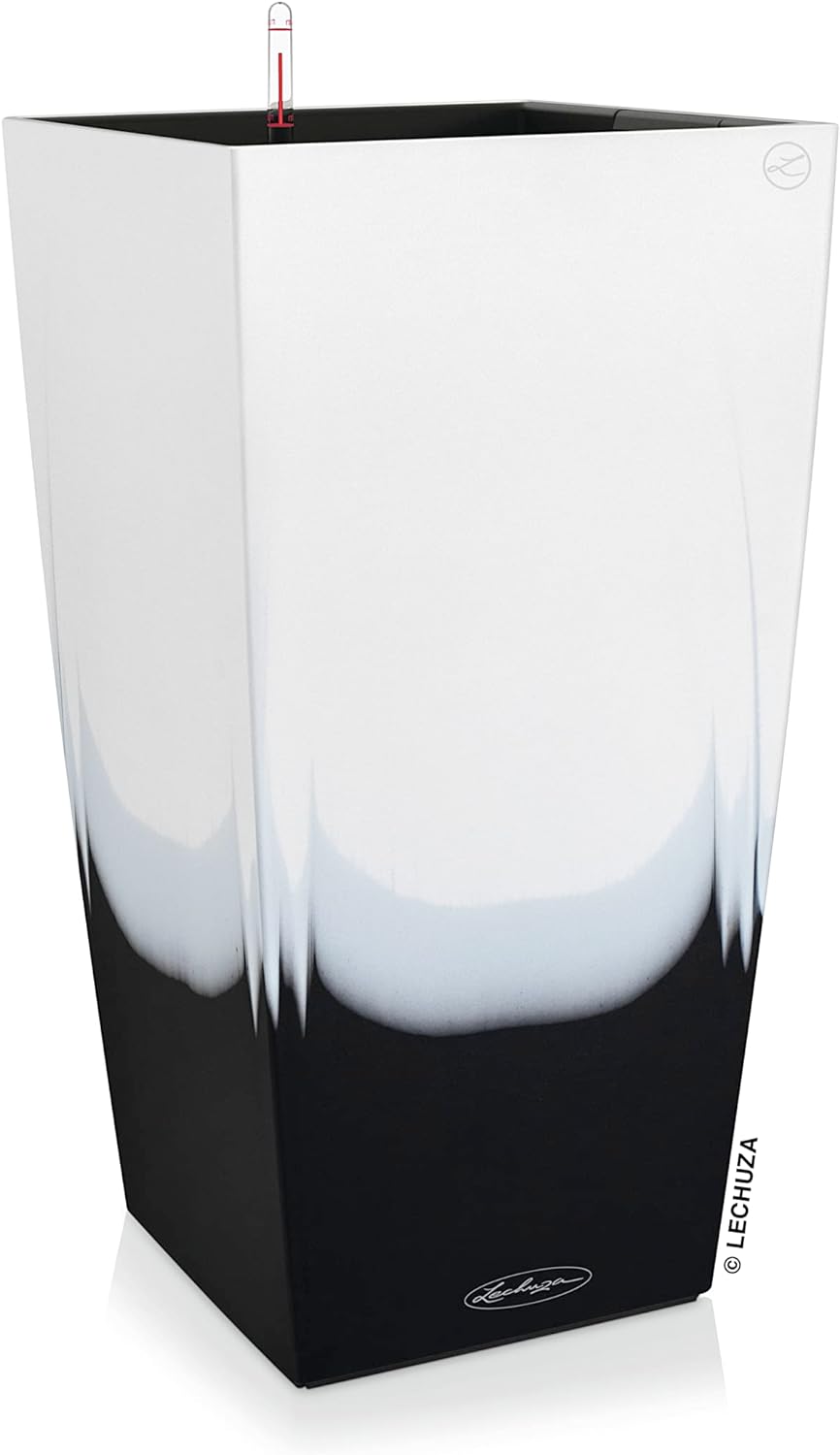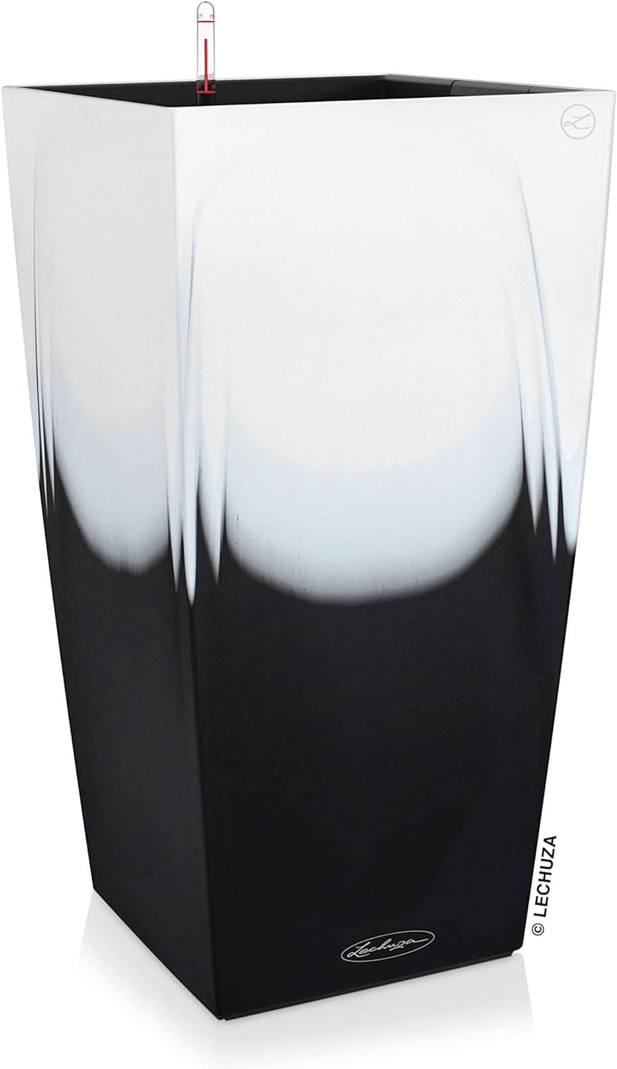 - Lieferumfang: 1x Lechuza CUBICO Color 30, Inkl. Bewässerungssystem, Material: Kunststoff PP, Farbe: Farbverlauf weiss/schwarz, Masse: 30 x 30 x 56 cm, Pflanzeinsatz: 25,3 x 25,3 cm, Pflanzvolumen: 14 l, Max. Pflanzhöhe: 60 cm