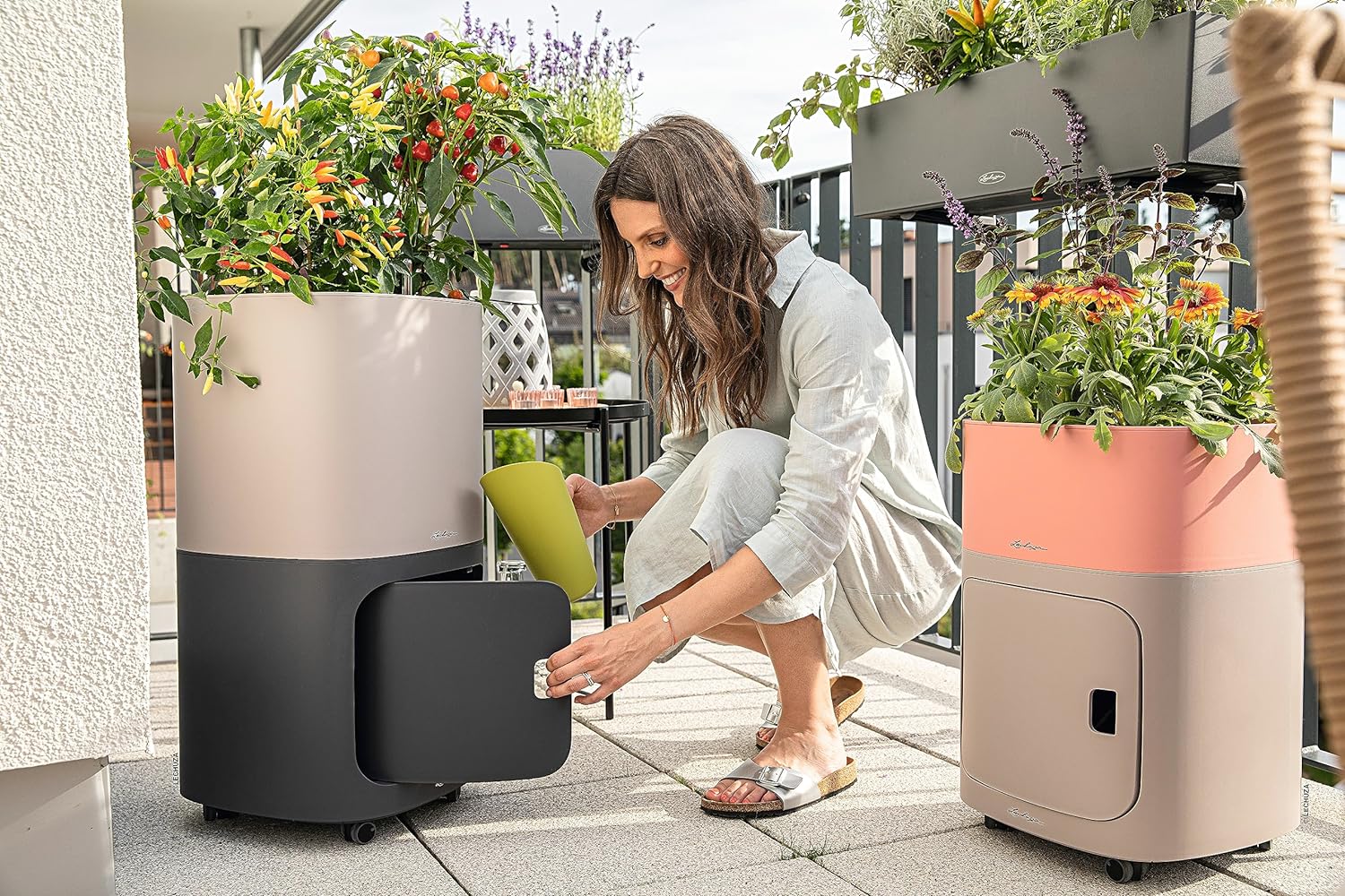 • FÜR INNEN & AUssEN GEEIGNET: Unkomplizierte Pflanzenpflege das ganze Jahr über. Pflanzgefäss mit Bewässerungssystem und Bodenschraube für den Ablauf von überschüssigem Regenwasser.