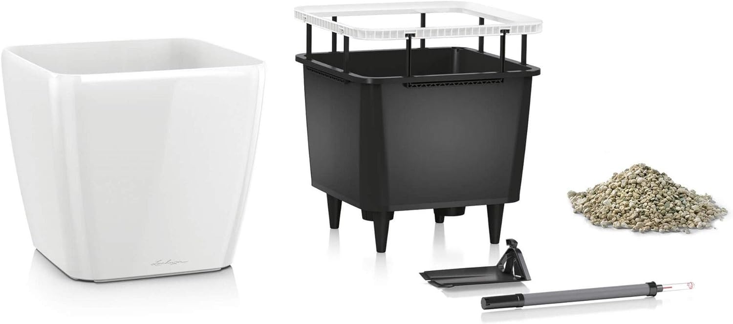 • ALL-IN-ONE: 1x Pflanzgefäss QUADRO Premium LS, inkl. Bewässerungssystem, Pflanzsubstrat LECHUZA-PON als Drainageschicht und wechselbarem Pflanzeinsatz mit Wasserstandsanzeiger und versenkbarem Griffrahmen in Gefässfarbe. Material: Kunststoff Masse: 28