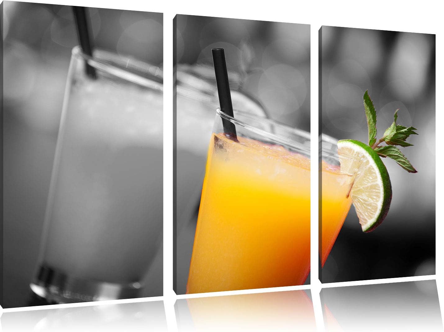 Leckerer fruchtiger Sommercocktail schwarz/weiss 3-Teiler Leinwandbild 120x80 Bild auf Leinwand, XXL