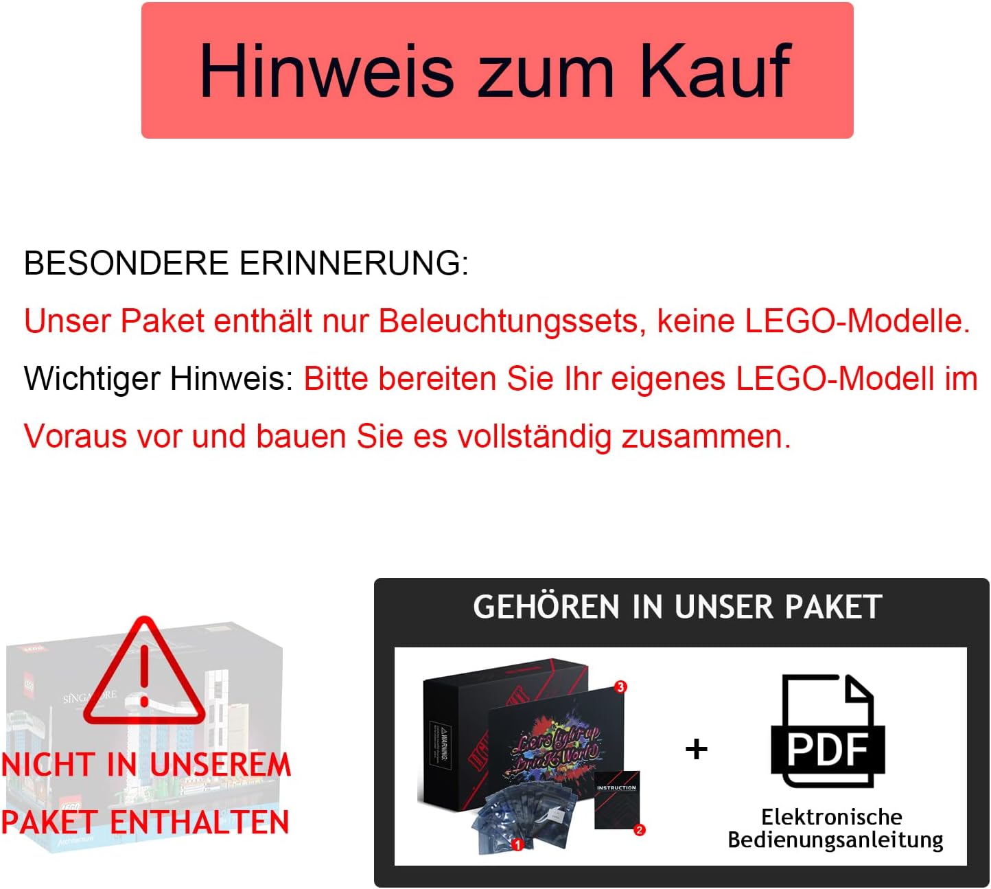 - 【Einfach zu installieren】: Hinweis: Es wird nur das LED-Licht mitgeliefert. Alle in Bildern und Videos gezeigten LEGO Sets sind nicht enthalten. Speziell für das Bausteinmodell 21057 von LEGO Architecture Singapore Skyline entwickelt.