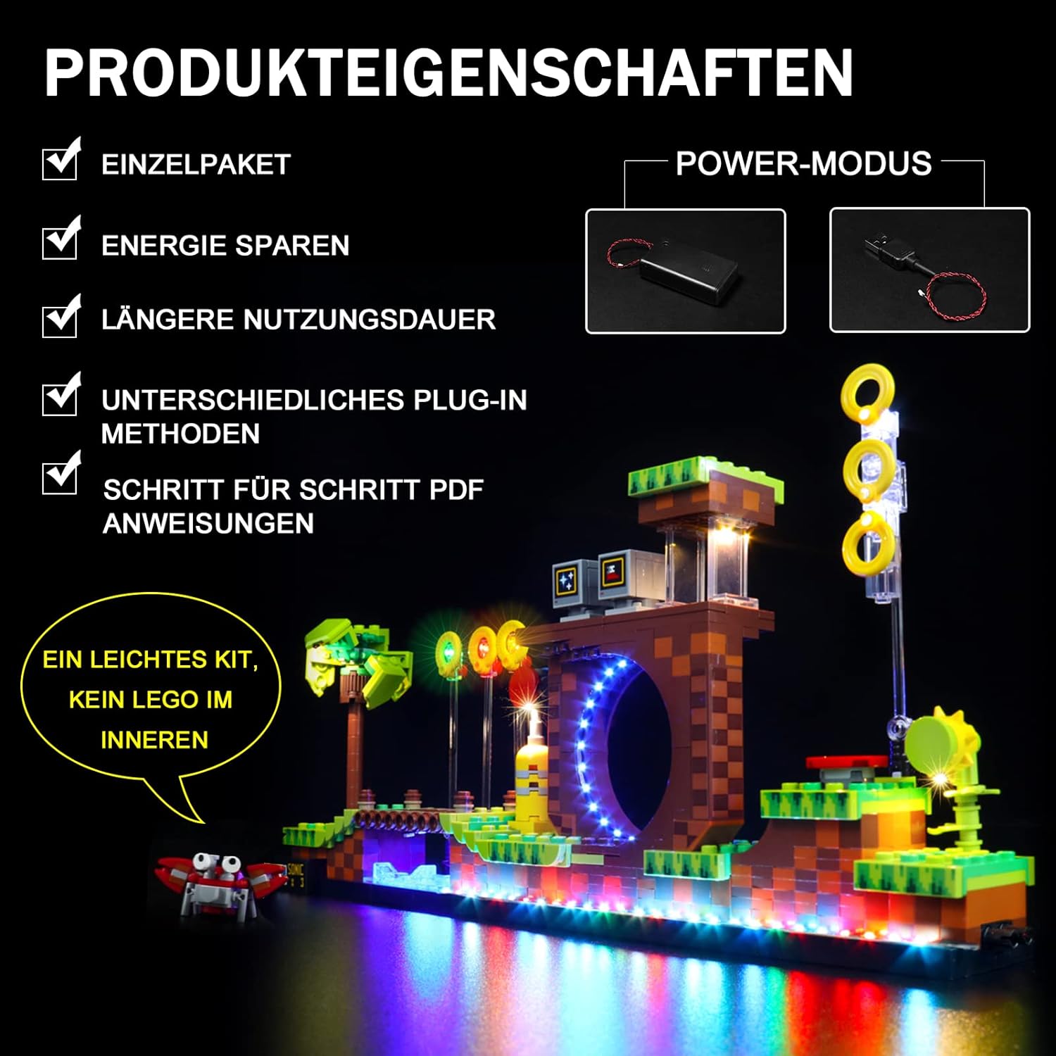 - ✅【Geniessen Sie kreativen DIY-Spass】 Unser LED-Lichterset für Sonic Lego bietet eine helle Beleuchtung, damit Sie sich von Ihrem geschäftigen Leben erholen und Ihre schöne Nacht wiedererlangen können. Das Beleuchtungsset ist perfekt für