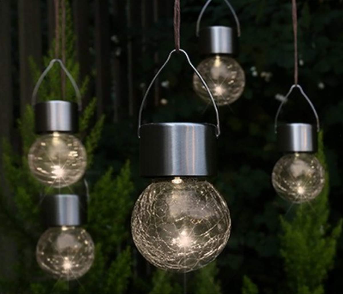 - 🌞 Solarlampen für den Garten: Dieses 5er Set LED Hänge-Solarleuchten mit Kristallglaskugeln sorgt für eine wunderschöne Gartenbeleuchtung und setzt funkelnde Lichtakzente in Ihrem Aussenbereich.