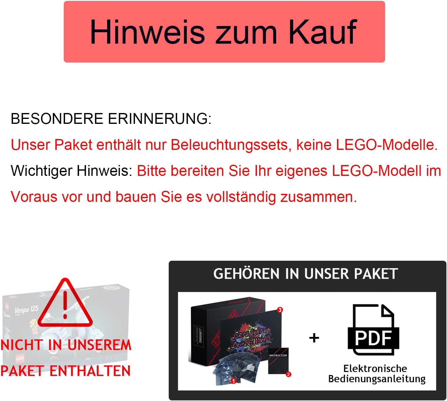 • 【Einfach zu installieren】: Speziell für LEGO 10298 Creator Expert Vespa 125 Bausteinmodell entwickelt. Das elektronische Handbuch ist mit einer Schritt-für-Schritt-Anleitung beigefügt, die zur Verbesserung der praktischen Fähigkeiten beiträgt.