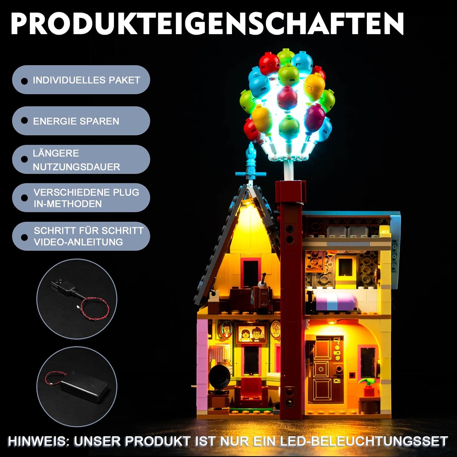 - 【Geniessen Sie kreativen DIY-Spass】 Unser LED-Lichterset für Lego Disney und Pixar 'Up' House bietet eine helle Beleuchtung, damit Sie sich von Ihrem geschäftigen Leben erholen und Ihre schöne Nacht wiedererlangen können. Das Beleuchtungsset ist