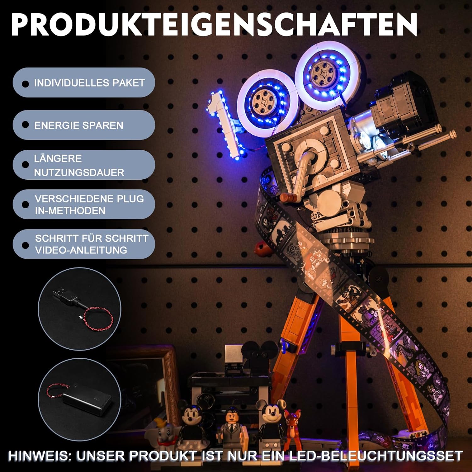 - 【Sicherheit durch Erfahrung】 Unser Dekorationslichtset für die LEGO Disney Walt Disney Tribute-Kamera 43230 besteht aus hochwertigen Kupferleitungen und verfügt über einen Hitze- und Verbrennungsschutz, um die Lebensdauer für Sie zu verlängern.