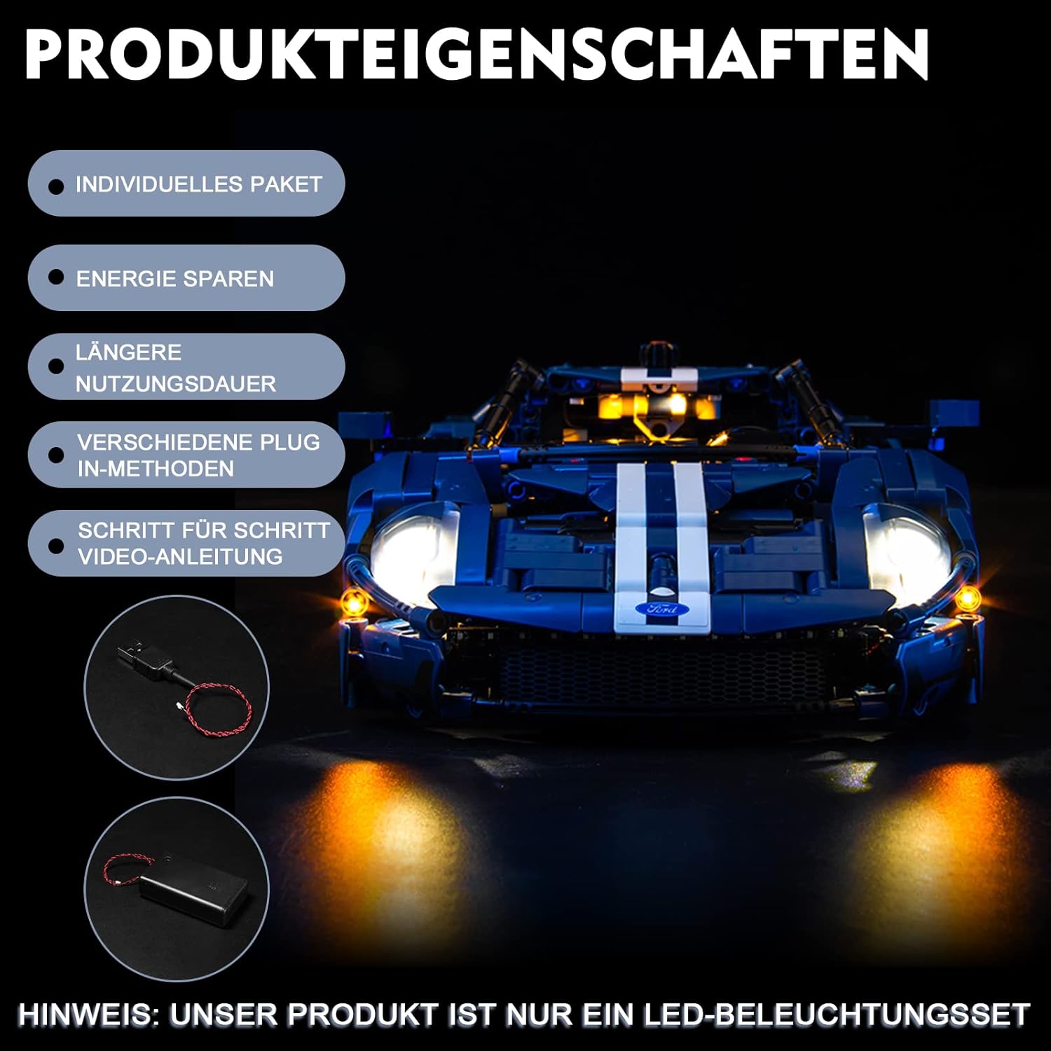 - 【Viel Spass beim kreativen Selbermachen】 Unser LED-Beleuchtungsset für LEGO Technic Ford GT bietet eine helle Beleuchtung, damit Sie sich von Ihrem geschäftigen Leben erholen und Ihre schöne Nacht wiedererlangen können. Das Beleuchtungsset ist