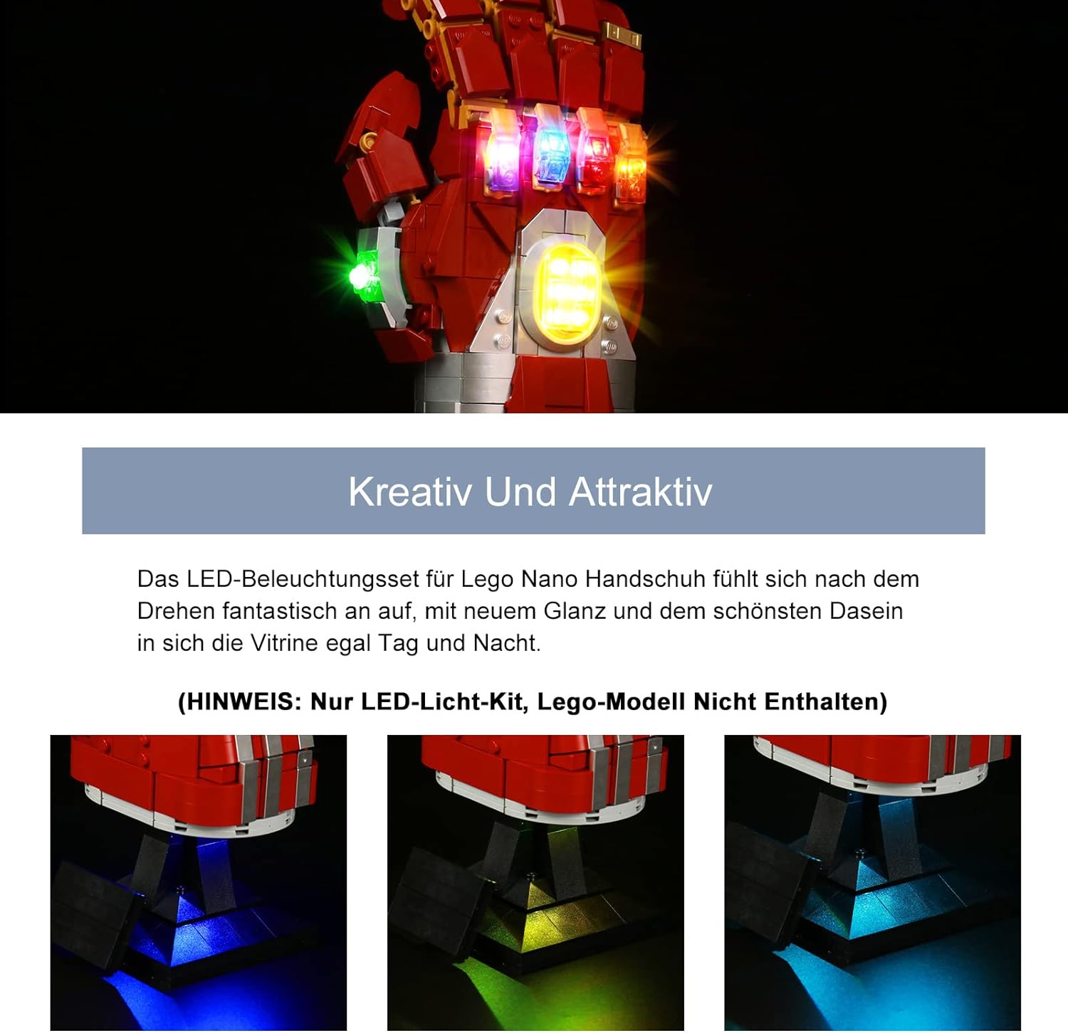 - 【Hochwertiges Material】 Unser Dekorationslicht-Kit für Infinity Handschuh 76223 besteht aus hochwertigen Kupferleitungen, die mit Hitze- und Verbrennungsschutz ausgestattet sind und ihre Lebensdauer für Sie verlängern können. 5V Niederspannung