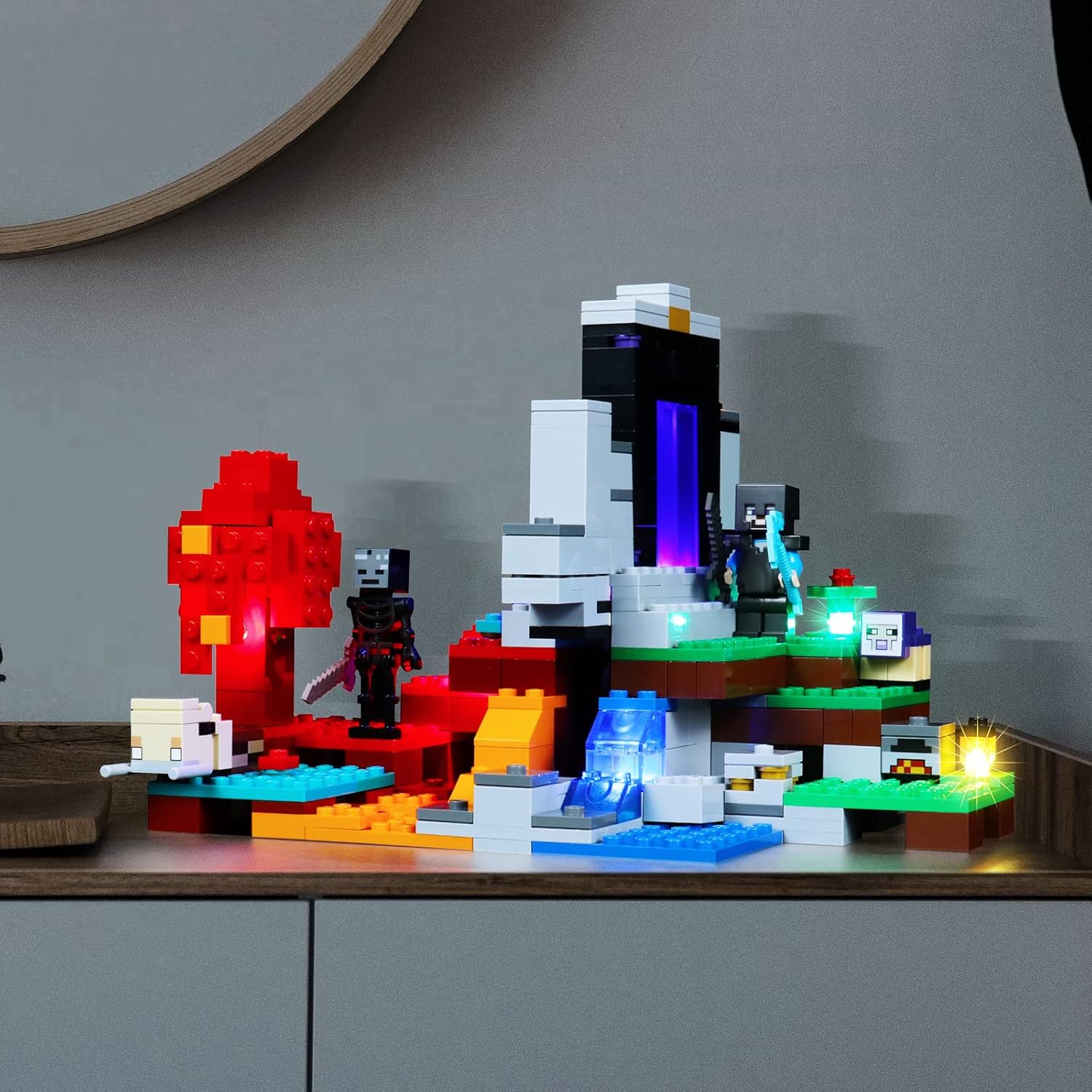 - 【Sicherheit mit Erfahrung】 Unser Dekorationslicht-Kit für Minecraft Das zerstörte Portal besteht aus hochwertigen Kupferleitungen, die mit Hitze- und Verbrennungsschutz ausgestattet sind und ihre Lebensdauer für Sie verlängern können. 5V