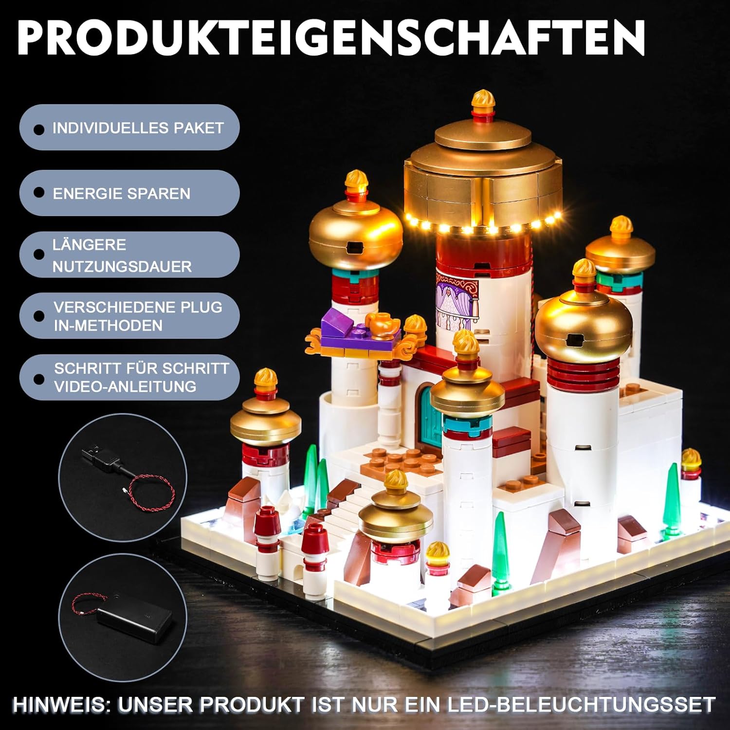 - 【Sicherheit durch Erfahrung】 Unser Dekorationslichtset für den LEGO-Palast von Agrabah besteht aus hochwertigen Kupferleitungen und verfügt über einen Hitze- und Verbrennungsschutz, der die Lebensdauer für Sie verlängern kann. 5-V-Niederspannung
