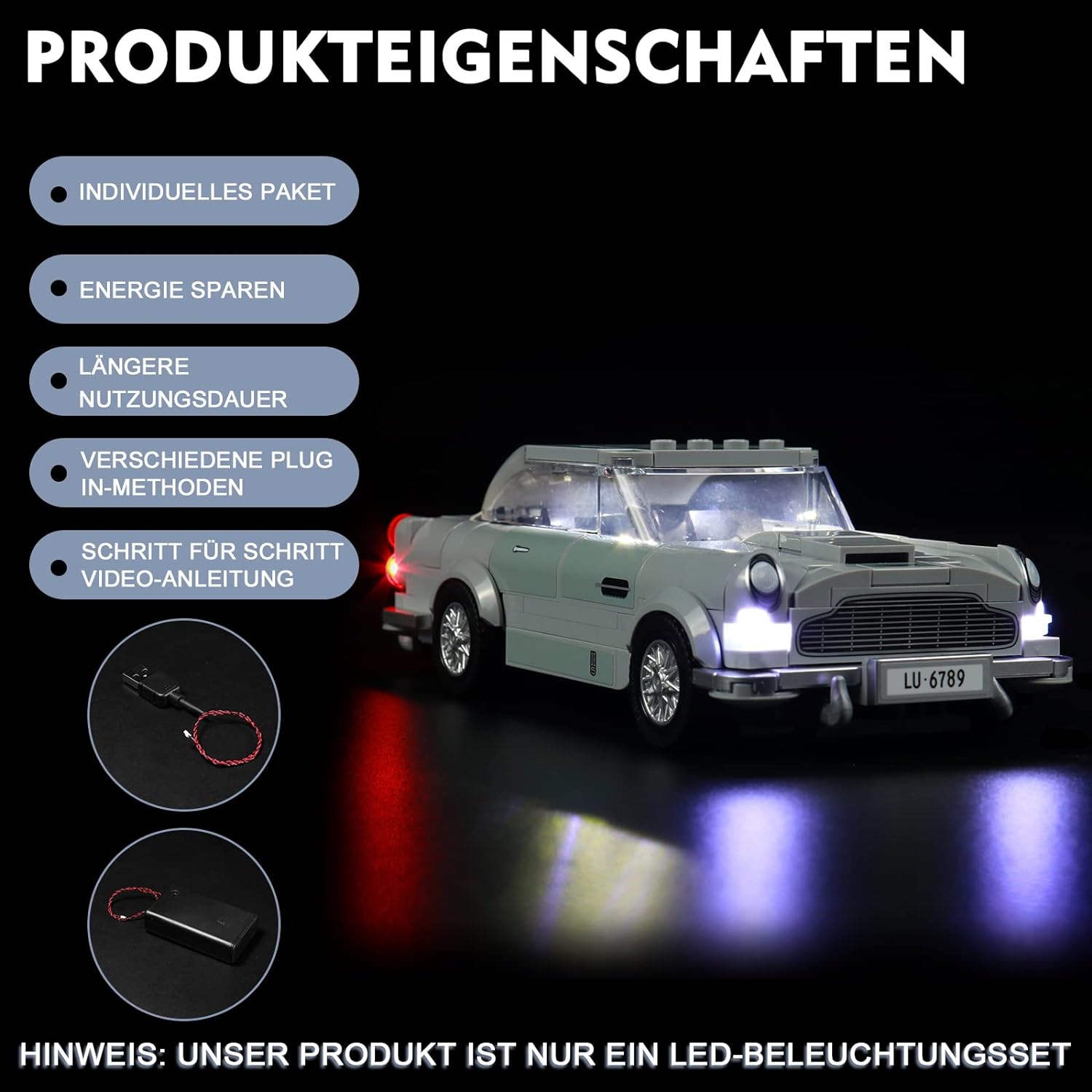 - 【Einfach zu installieren】 Speziell für LEGO 007 Aston Martin DB5 entwickelt.Alle LEDs haben ein einheitliches Lichtmuster und die Kabelanschlüsse passen gut zusammen.Schritt-für-Schritt-Videoinstallationsanleitungen werden von unserem