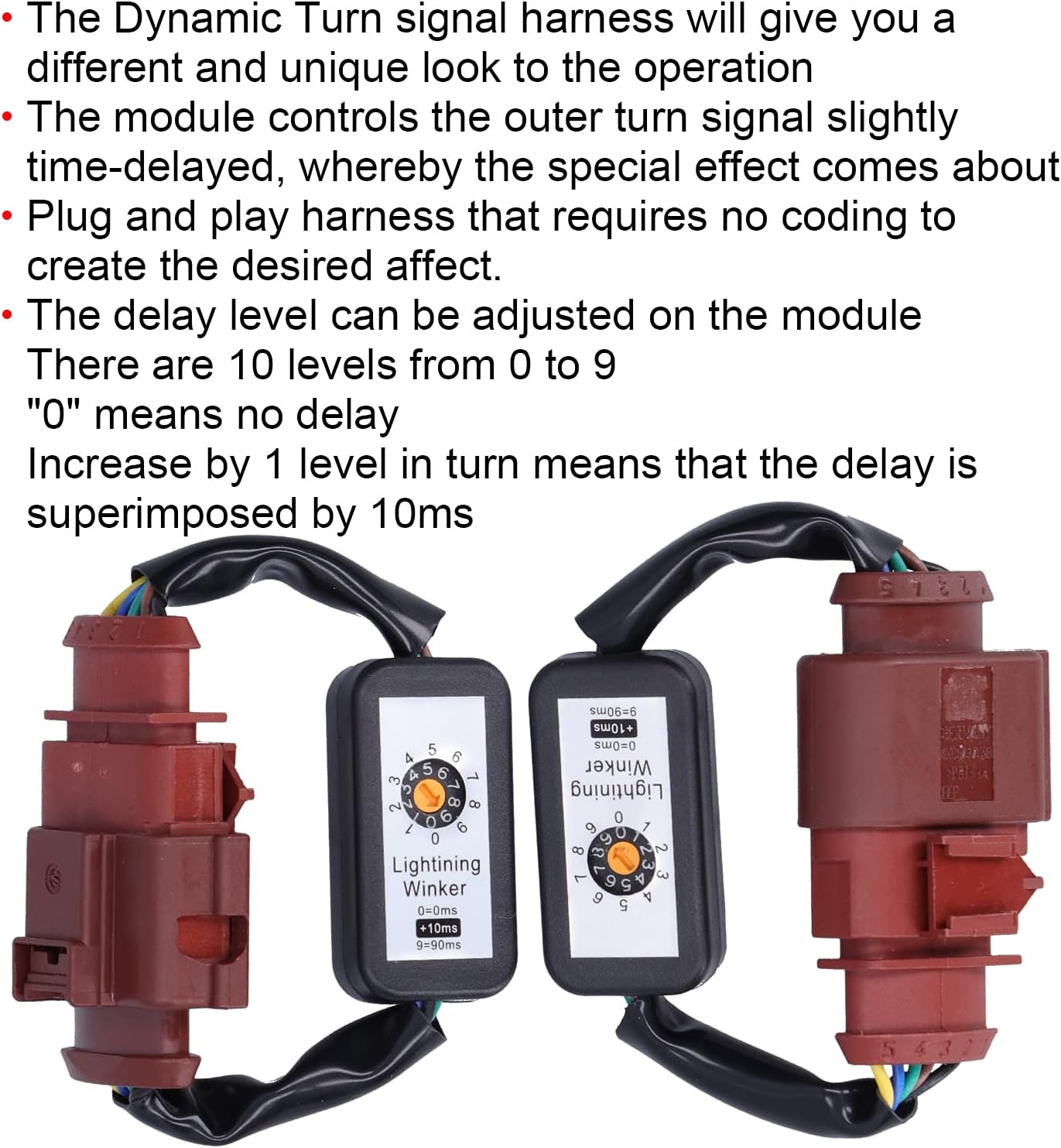 • Design eccellente ------ Il modulo controlla l'indicatore di direzione esterno micro-ritardato per produrre effetti speciali e aumentare il fattore di sicurezza. Produzione professionale, prestazioni stabili.